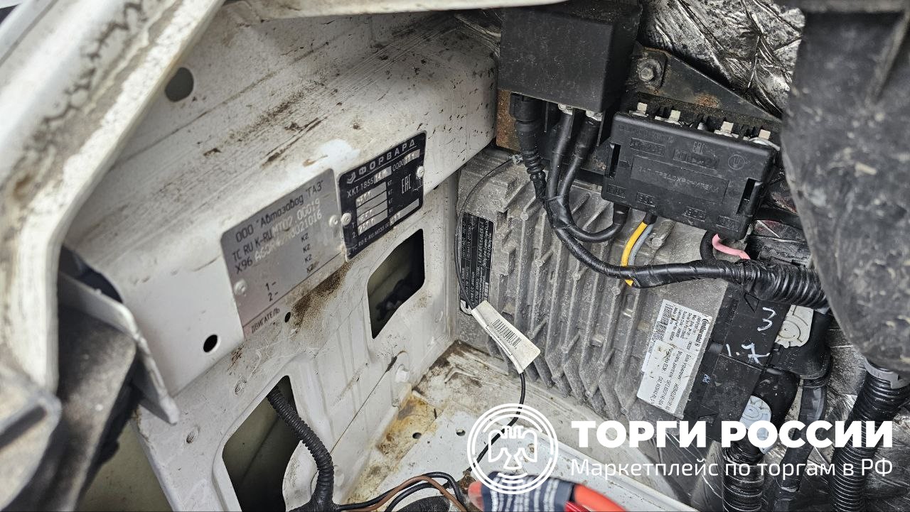 Автомобиль Газ Форвард в удовлетворительном состоянии. Пробег автомобиля составляет 3722 км. Двигатель завести не удалось по причине отсутствия АКБ. СТС также отсутствует. Присутствуют отслойки виниловой брендированной плёнки. Плохо держится передняя заглушка аварийного крюка. Рычажок открытия капота повреждён. Для открытия капота пришлось прибегнуть к помощи плоскогубцев. В салоне находятся много вещей. Рекомендовано провести химчистку.
