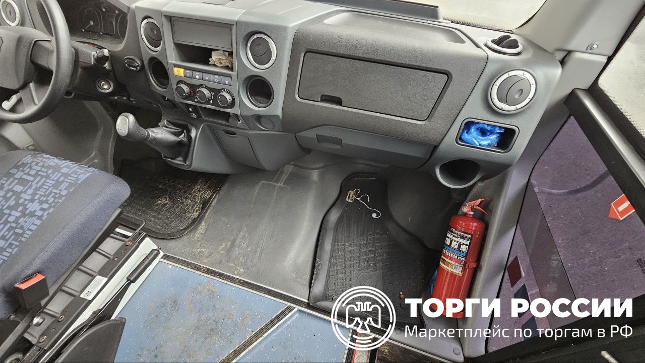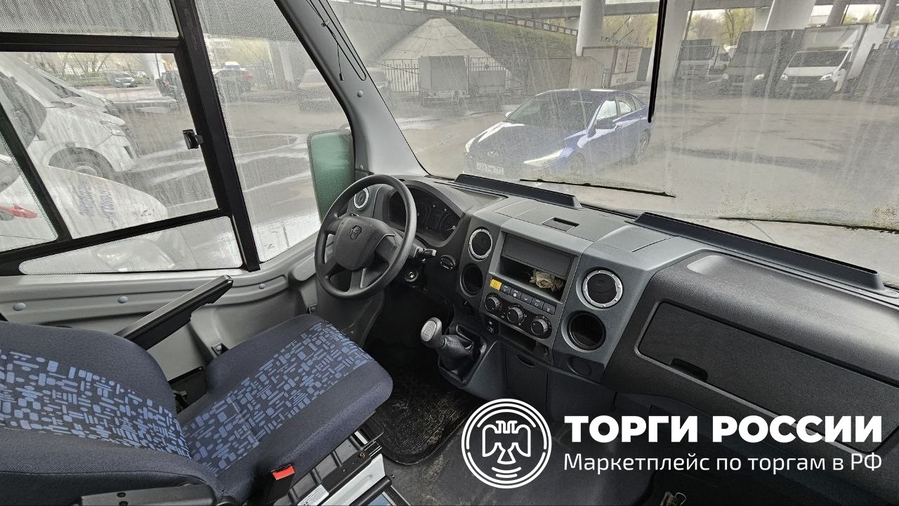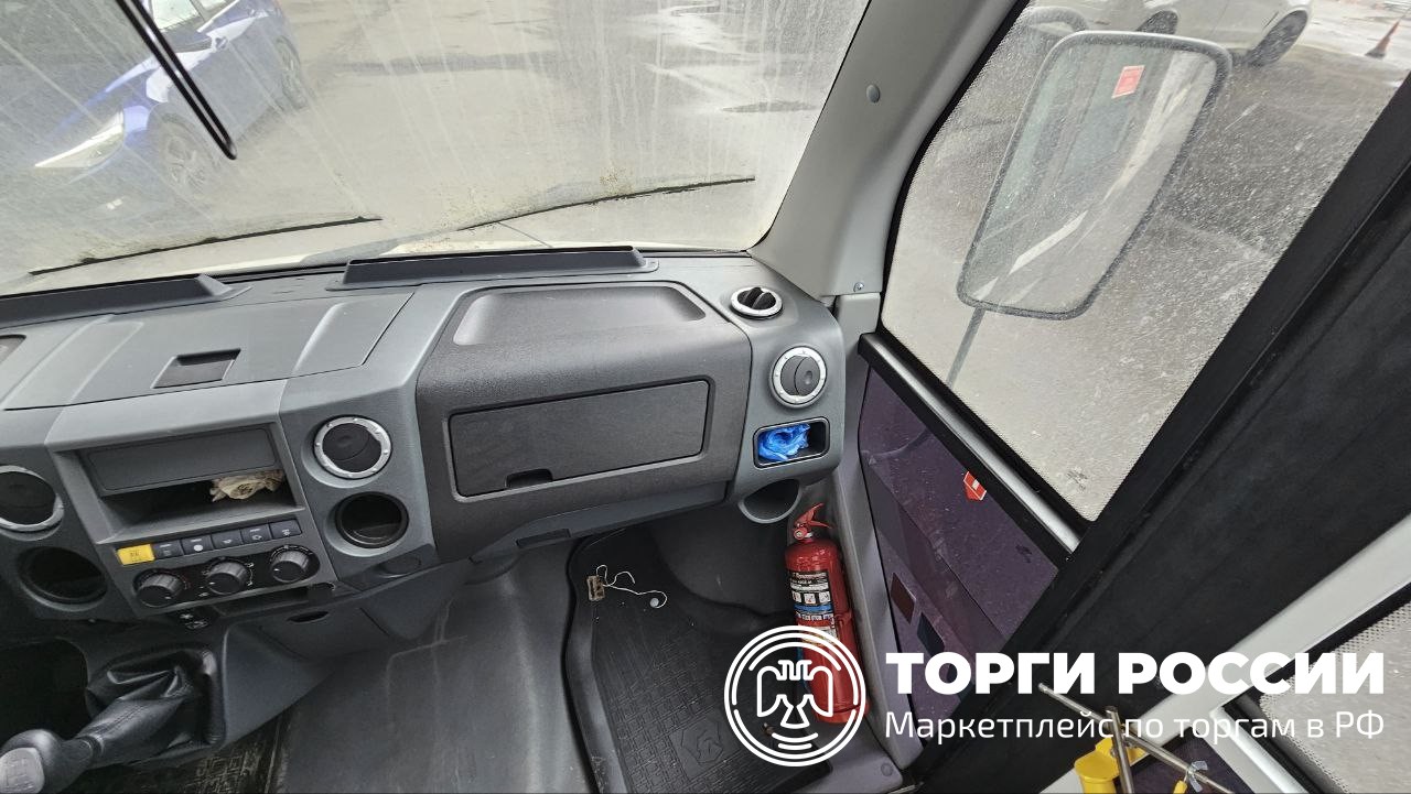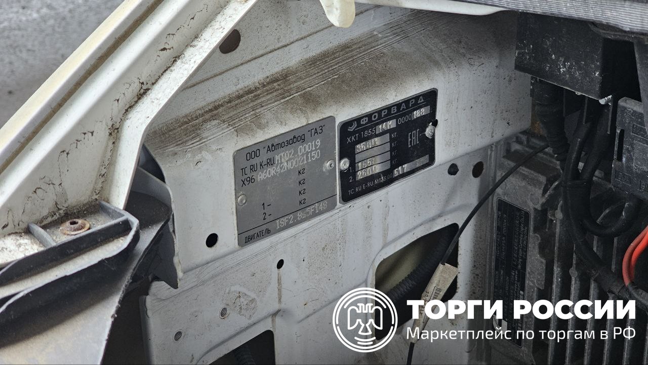 Автомобиль Газ Форвард в удовлетворительном состоянии. Пробег автомобиля составляет 3384 км. Двигатель завести не удалось по причине отсутствия АКБ. Не открывается боковая дверь с кнопок. Отсутствуют заглушка и буксировочный крюк. Присутствуют отслойки виниловой брендированной плёнки. В кабине отсутствует педаль газа. В салоне находятся разобранные тумбы. Рекомендовано провести химчистку.
