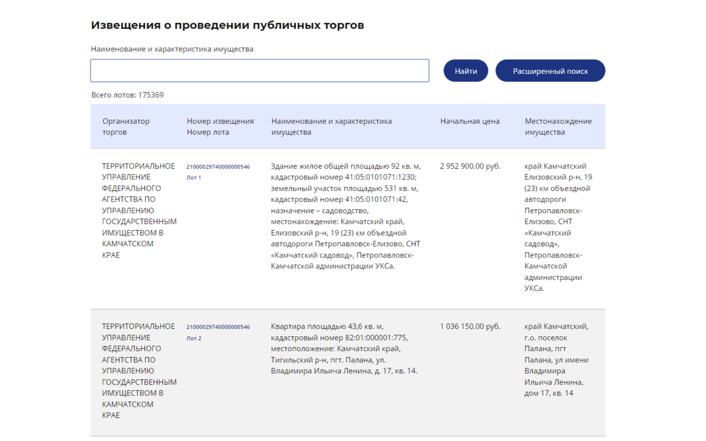 На странице сайта ФССП «Извещения о проведении публичных торгов» указана общая информация обо всех торгах арестованным имуществом.