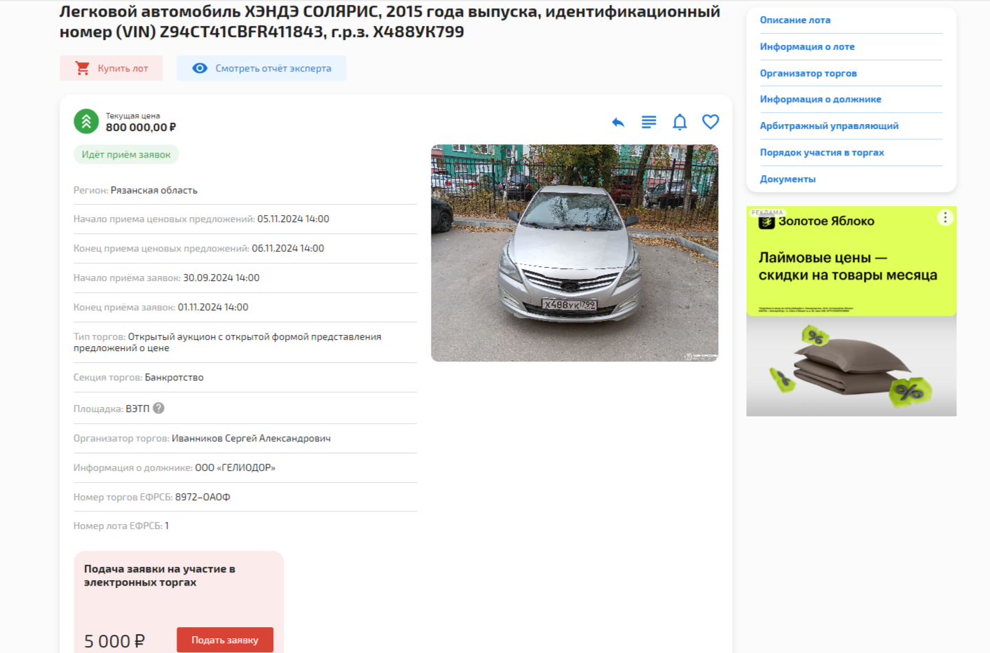 Так выглядит на сайте «Торги России» карточка должника. Удобно и просто.