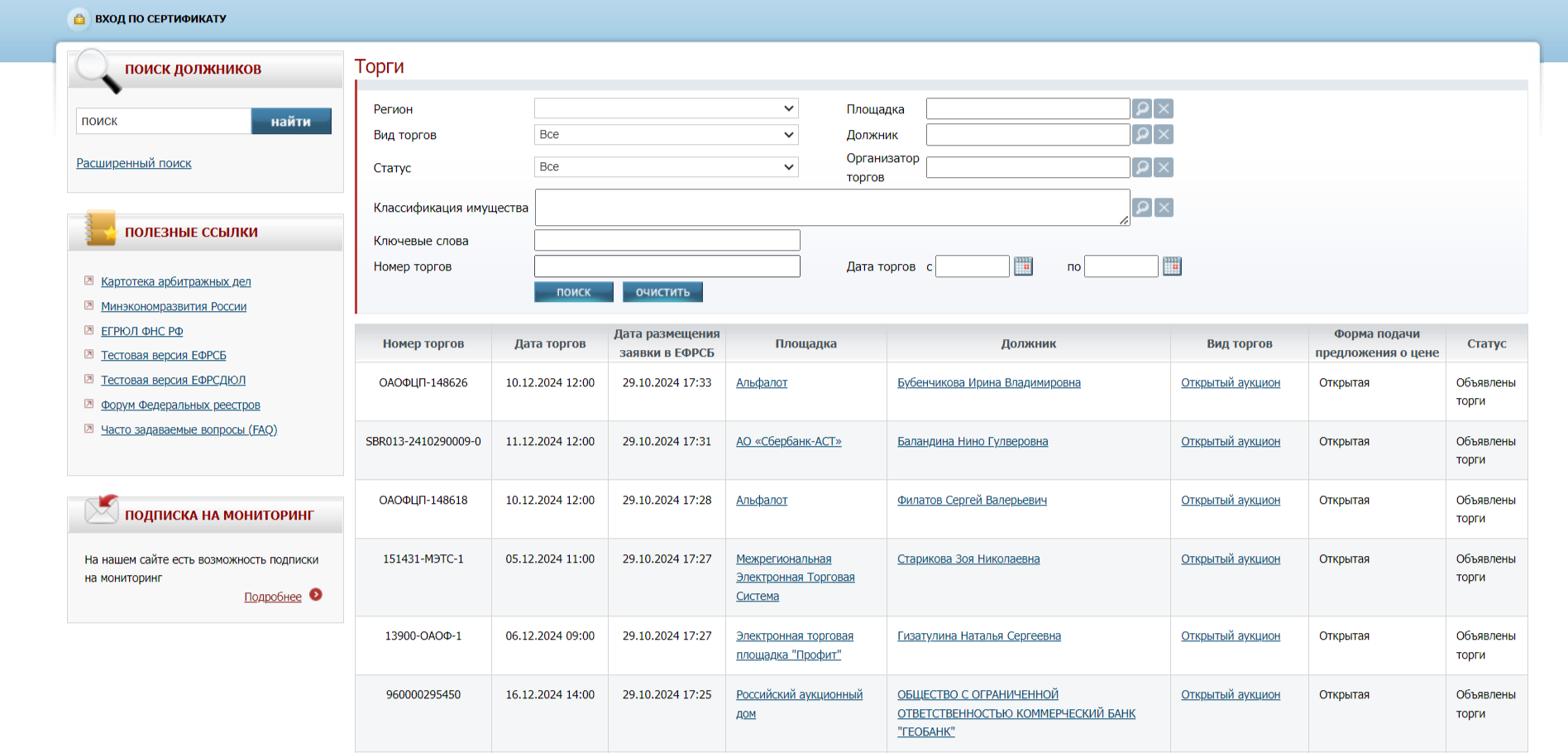 - https://торги-россии.рф/news
