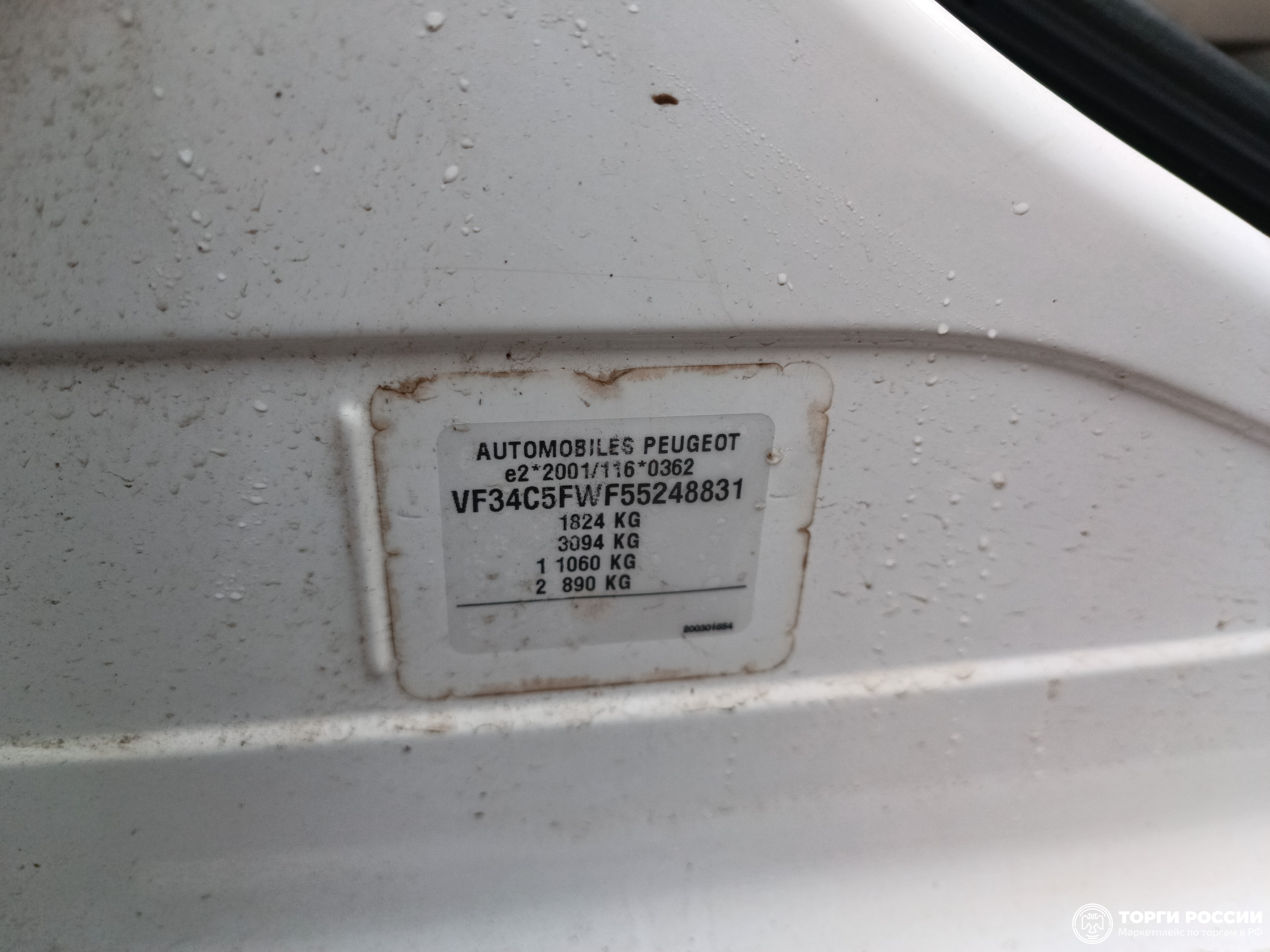 Транспортное средство, Модель: PEUGEOT 308, Тип КПП: АКПП, VIN VF34C5FWF55248831, Гос. номер Т303РК98, Объем двигателя (куб.см.): 1598, Мощность двигателя (л.с./кВт): 120/88.26, Год выпуска: 2008, Наличие ПТС: нет, Наличие ключей: нет, Начальная цена 255 850 руб.