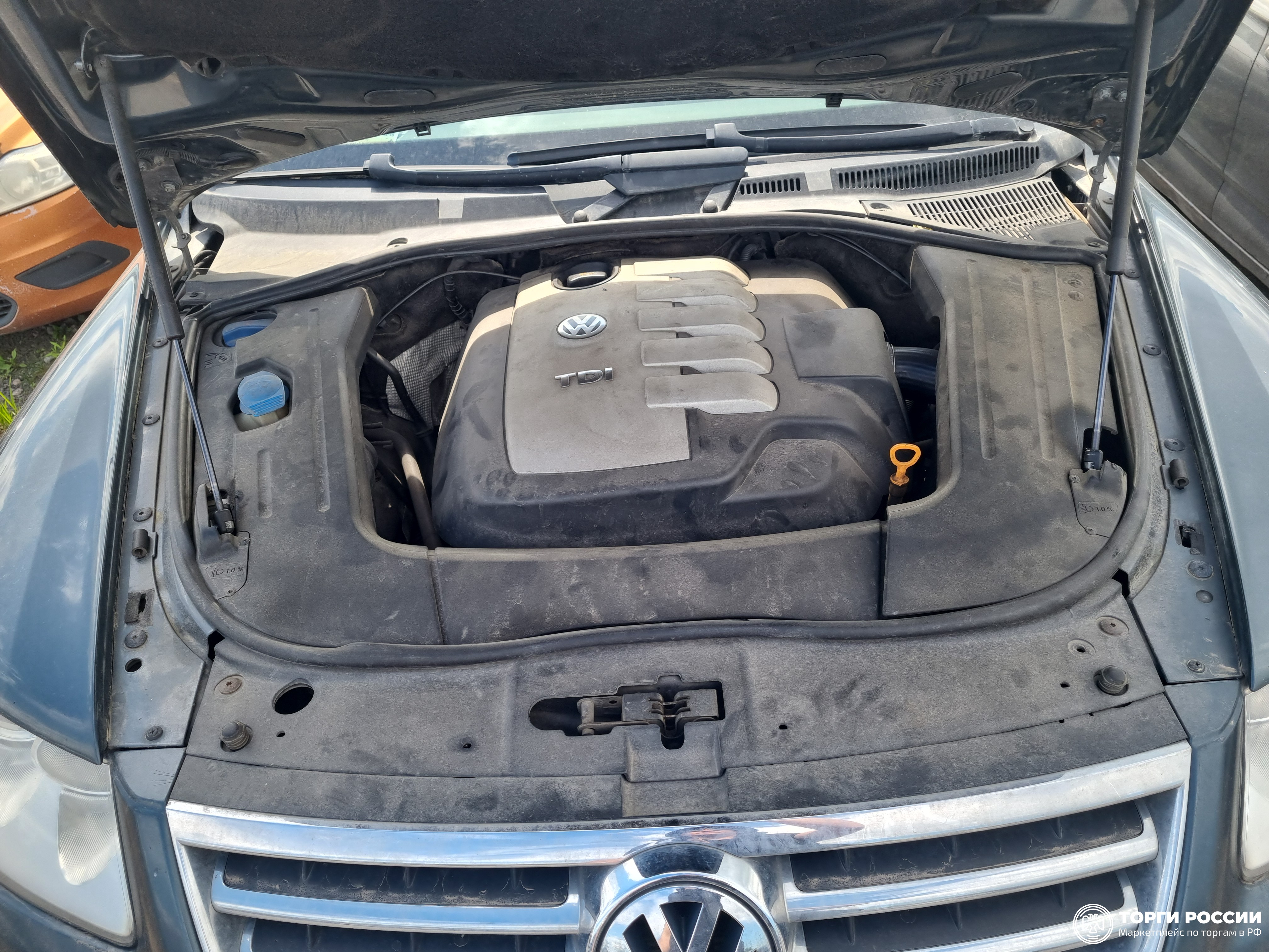 Автомобиль VOLKSWAGEN Touareg в хорошем состоянии. Запустить двигатель, установить пробег не удалось по причине полного разряда АКБ. На момент осмотра автомобиль грязный. Кузов автомобиля с незначительными повреждениями: ➢ капот- царапина ➢ задняя левая дверь- вздутие, царапина, коррозия ➢ заднее левое крыло- царапина, коррозия ➢ задний бампер- царапина, трещина ➢ заднее правое крыло- царапина, скол ➢ передняя правая дверь- царапина, коррозия Вторично окрашены: ➢ капот ➢ передняя левая дверь ➢ передняя правая дверь ➢ задняя левая дверь ➢ задняя правая дверь ➢ заднее левое крыло ➢ заднее правое крыло ➢ крышка багажника Подкапотное пространство грязное. Течей технических жидкостей не обнаружено. Обнаружено запотевание масла. Фары, задние фонари, стекла визуально в хорошем состоянии, без повреждений. Зимние шины в удовлетворительном состоянии. Легкосплавные диски визуально в хорошем состоянии, присутствуют небольшие дефекты эксплуатации (сколы, царапины). Багажный отсек в хорошем состоянии, грязный, с небольшими эксплуатационными дефектами пластиковых элементов. Салон в хорошем состоянии, имеются небольшие эксплуатационные дефекты (царапины, потертости, пятна). Руль- присутствуют дефекты эксплуатации в виде потёртостей. Рычаг КПП в хорошем состоянии, дефектов не имеют. Данный отчет актуален на момент осмотра. Автоэксперт не дает гарантии на возможные будущие неисправности/поломки/ошибки.