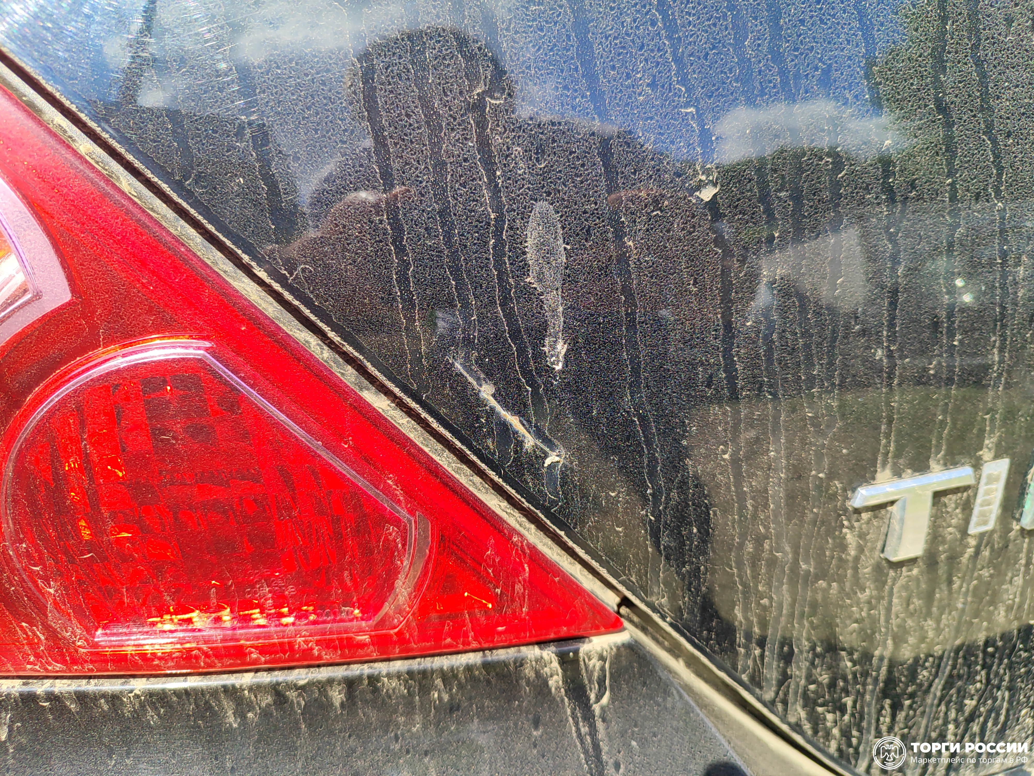 Автомобиль Nissan Tiida в удовлетворительном состоянии. Пробег автомобиля составляет 223 365 км. На момент осмотра автомобиль грязный. Кузов автомобиля с повреждениями: ➢ капот — сколы, смещен; ➢ передний бампер — сколы, царапины, смещен, разрушена решетка; ➢ переднее правое крыло — сколы, царапины, смещено; ➢ левая фара — царапина, скол, трещина; ➢ передняя правая дверь — вздутие ЛКП, царапины, коррозия, сколы; ➢ задняя правая дверь — сколы, коррозия; ➢ заднее правое крыло — вздутие ЛКП, царапины, коррозия, сколы; ➢ крыша — вздутие ЛКП, коррозия, сколы; ➢ крышка багажника — царапины, трещина ЛКП; ➢ заднее левое крыло — вздутие ЛКП, царапины, коррозия, сколы; ➢ передняя левая дверь — вздутие ЛКП, царапины, коррозия, сколы. Вторично окрашены: ➢ крыло переднее правое; ➢ капот; ➢ стойка левая; ➢ дверь задняя левая; ➢ крыло переднее левое. Подкапотное пространство грязное. Двигатель запускается без проблем, работает корректно. Посторонних звуков не наблюдается. Течей технических жидкостей не обнаружено. Отсутствует крышка расширительного бака. Задние фонари, стекла визуально в хорошем состоянии, без повреждений. Летние шины, легкосплавные диски визуально в удовлетворительном состоянии, присутствуют дефекты эксплуатации (сколы, царапины, потертости). Салон в удовлетворительном состоянии, имеются множественные эксплуатационные дефекты (царапины, потертости), рекомендована химчистка. Руль, рычаг КПП в удовлетворительном состоянии, имеют сильные потертости. Обшивка передней левой дверной карты деформирована. Задний диван имеет повреждения обивки. Багажный отсек в удовлетворительном состоянии, с многочисленными эксплуатационными дефектами пластиковых элементов в виде потертостей, царапин. Данный отчет актуален на момент осмотра. Автоэксперт не дает гарантии на возможные будущие неисправности/поломки/ошибки.