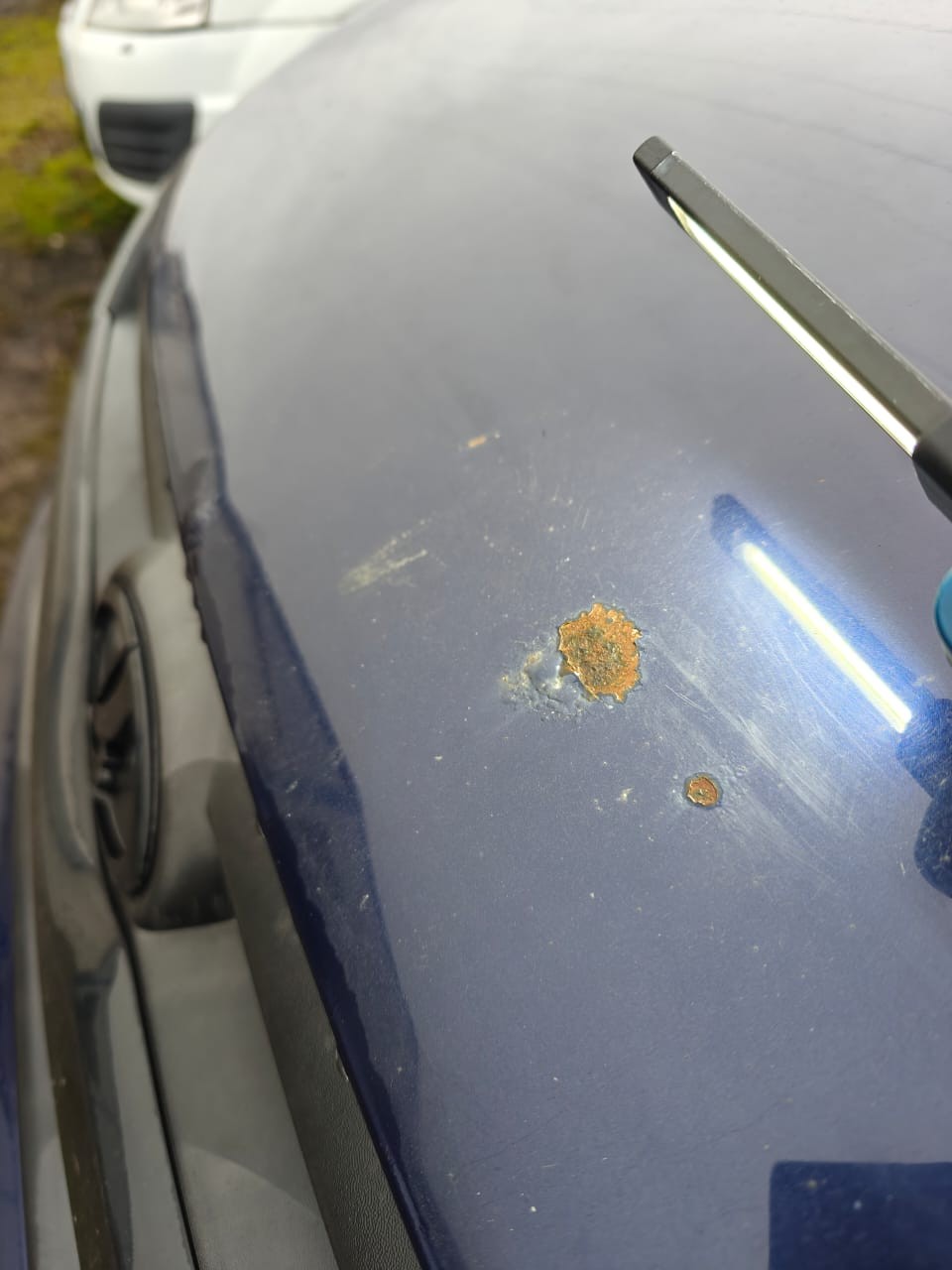 Автомобиль LADA GRANTA в удовлетворительном состоянии. Запустить двигатель, осмотреть подкапотное пространство, багажное отделение и салон не удалось по причине отсутствия ключей. На момент осмотра автомобиль в загрязненном состоянии. Кузов автомобиля с множественными повреждениями: ➢передний бампер- царапины, сколы ➢капот- вздутие, царапины, коррозия, сколы ➢задний бампер- царапины, сколы ➢переднее левое крыло- царапины, коррозия, сколы ➢передняя левая дверь- вздутие, царапины, коррозия, сколы ➢переднее правое крыло- вздутие, царапины, коррозия, сколы Вторично окрашены: ➢переднее левое крыло ➢передняя левая дверь ➢задняя левая дверь ➢левый порог ➢правый порог ➢переднее правое крыло Фары, задние фонари, стекла визуально в удовлетворительном состоянии, имеются дефекты в виде царапин. Летние шины в удовлетворительном состоянии. Стальные диски в удовлетворительном состоянии, имеются дефекты эксплуатации в виде царапин, сколов. Данный отчет актуален на момент осмотра. Автоэксперт не даёт гарантии на возможные будущие неисправности/поломки/ошибки. Автоэксперт не гарантирует отсутствие дополнительных скрытых дефектов и точность показаний ЛКП.