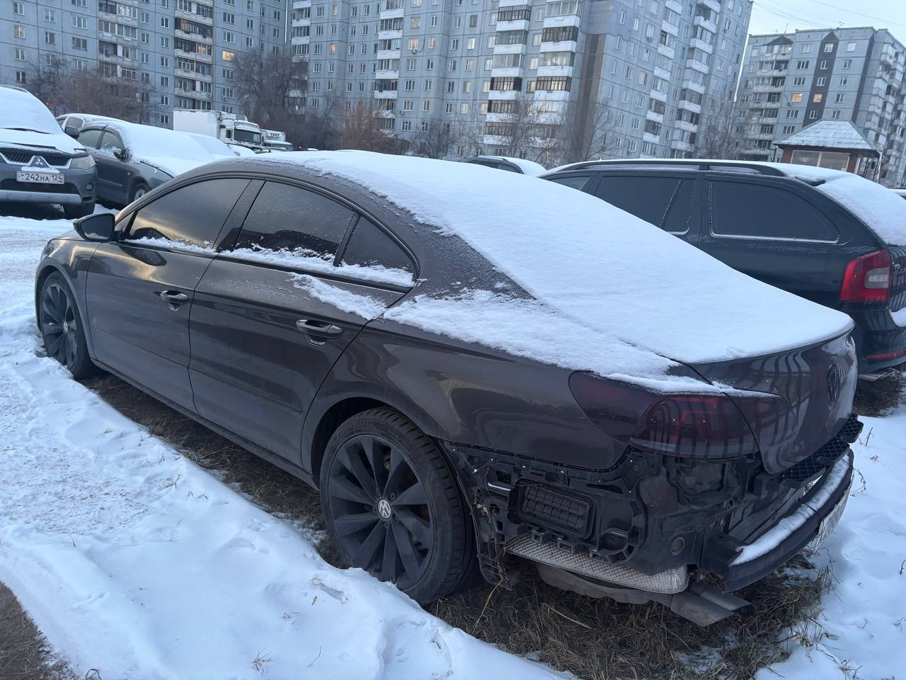 Автомобиль Volkswagen Passat CC в удовлетворительном состоянии. Запустить двигатель, осмотреть подкапотное пространство, салон и багажный отсек не удалось по причине отсутствия ключей. На момент осмотра автомобиль в загрязненном состоянии. Кузов автомобиля с повреждениями: ➢задний бампер- отсутствует ➢задняя правая дверь- царапины, коррозия, сколы ➢передняя правая дверь- царапины, коррозия, сколы ➢переднее правое крыло- царапины, коррозия, сколы Вторично окрашены: ➢передняя левая дверь ➢задняя левая дверь ➢заднее левое крыло Фары, задние фонари, стекла визуально в удовлетворительном состоянии, имеются дефекты в виде царапин. Летние шины в удовлетворительном состоянии. Легкосплавные диски в удовлетворительном состоянии, имеются дефекты эксплуатации в виде царапин, сколов. Данный отчет актуален на момент осмотра. Автоэксперт не даёт гарантии на возможные будущие неисправности/поломки/ошибки. Автоэксперт не гарантирует отсутствие дополнительных скрытых дефектов и точность показаний ЛКП.