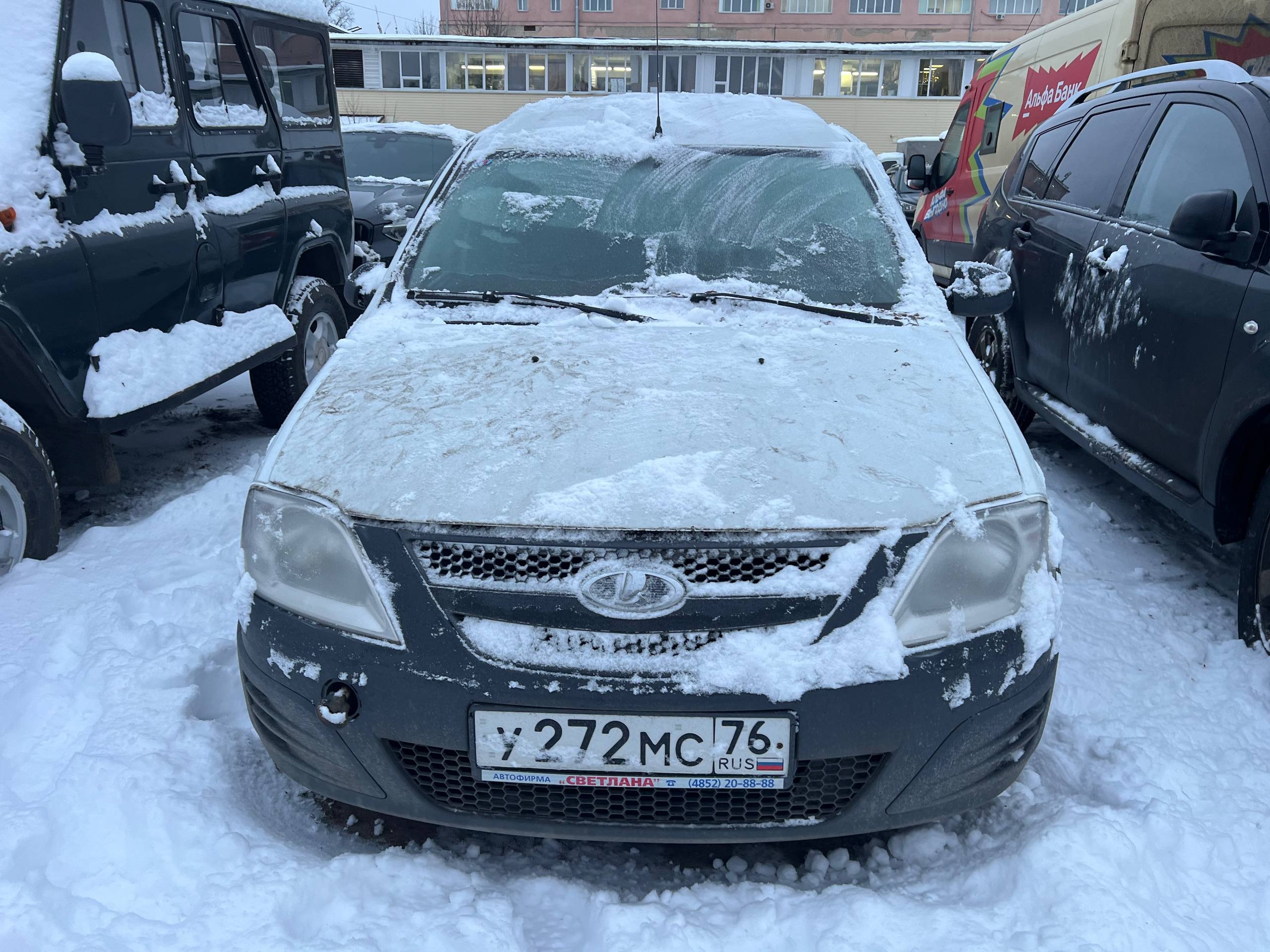 Автомобиль LADA LARGUS в удовлетворительном состоянии. Запустить двигатель и осмотреть подкапотное пространство не удалось по причине отсутствия ключей. На момент осмотра автомобиль в загрязненном состоянии. Кузов автомобиля с множественными повреждениями: ➢капот- коррозия, сколы ➢переднее левое крыло- коррозия, сколы ➢левый порог- коррозия, сколы ➢задняя левая дверь- вмятина, сколы ➢заднее левое крыло- коррозия, сколы ➢крышка багажника- царапины, сколы ➢правый порог- коррозия, сколы ➢переднее правое крыло- сколы Вторично окрашены: ➢переднее левое крыло ➢капот Фары, задние фонари, стекла визуально в удовлетворительном состоянии, имеются дефекты в виде царапин. Зимние шины в неудовлетворительном состоянии. Стальные диски в неудовлетворительном состоянии, имеются дефекты эксплуатации в виде царапин, сколов, коррозии. Салон в удовлетворительном состоянии, имеются множественные эксплуатационные дефекты (царапины, потёртости), рекомендована химчистка. Руль, рычаг КПП в удовлетворительном состоянии имеют потертости. Багажный отсек в удовлетворительном состоянии загрязненный, с множественными эксплуатационными дефектами пластиковых элементов в виде потёртостей, царапин. Запасное колесо в наличии. Данный отчет актуален на момент осмотра. Автоэксперт не даёт гарантии на возможные будущие неисправности/поломки/ошибки. Автоэксперт не гарантирует отсутствие дополнительных скрытых дефектов и точность показаний ЛКП.