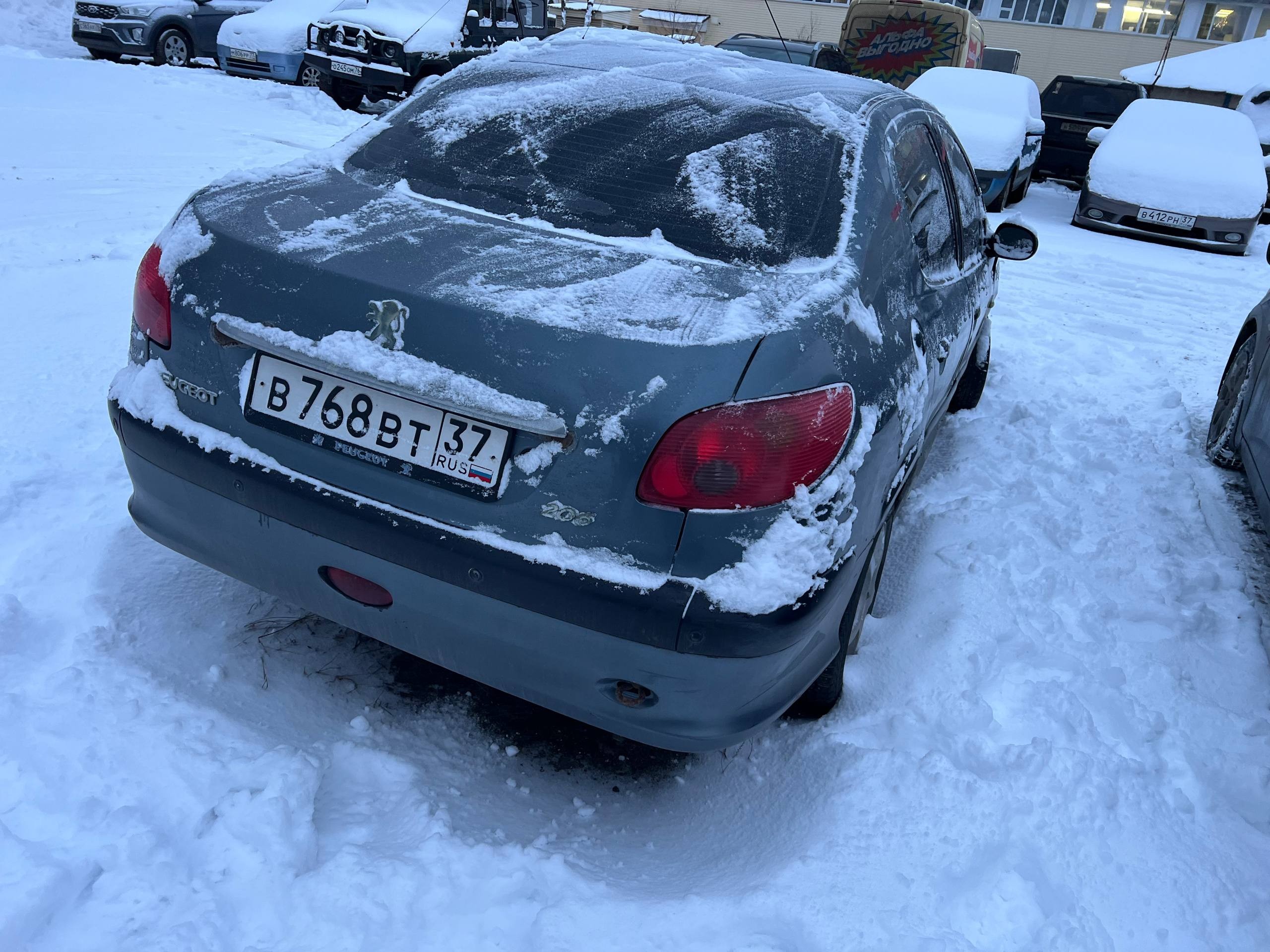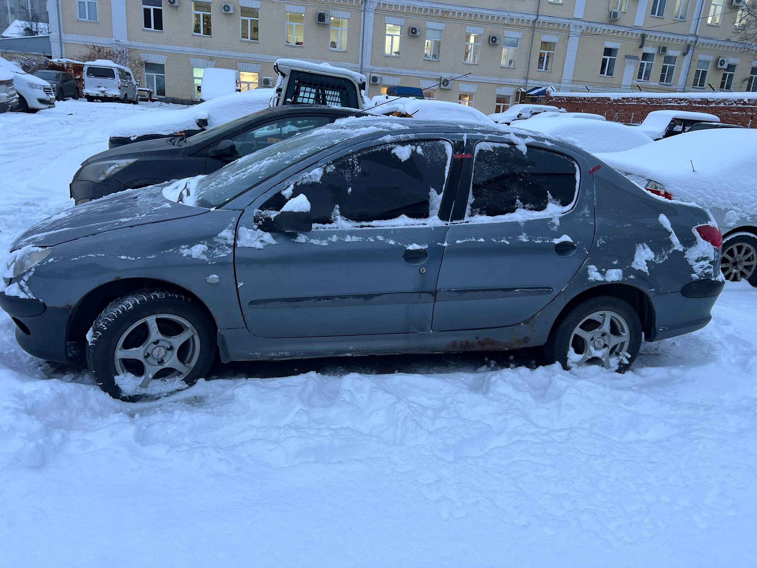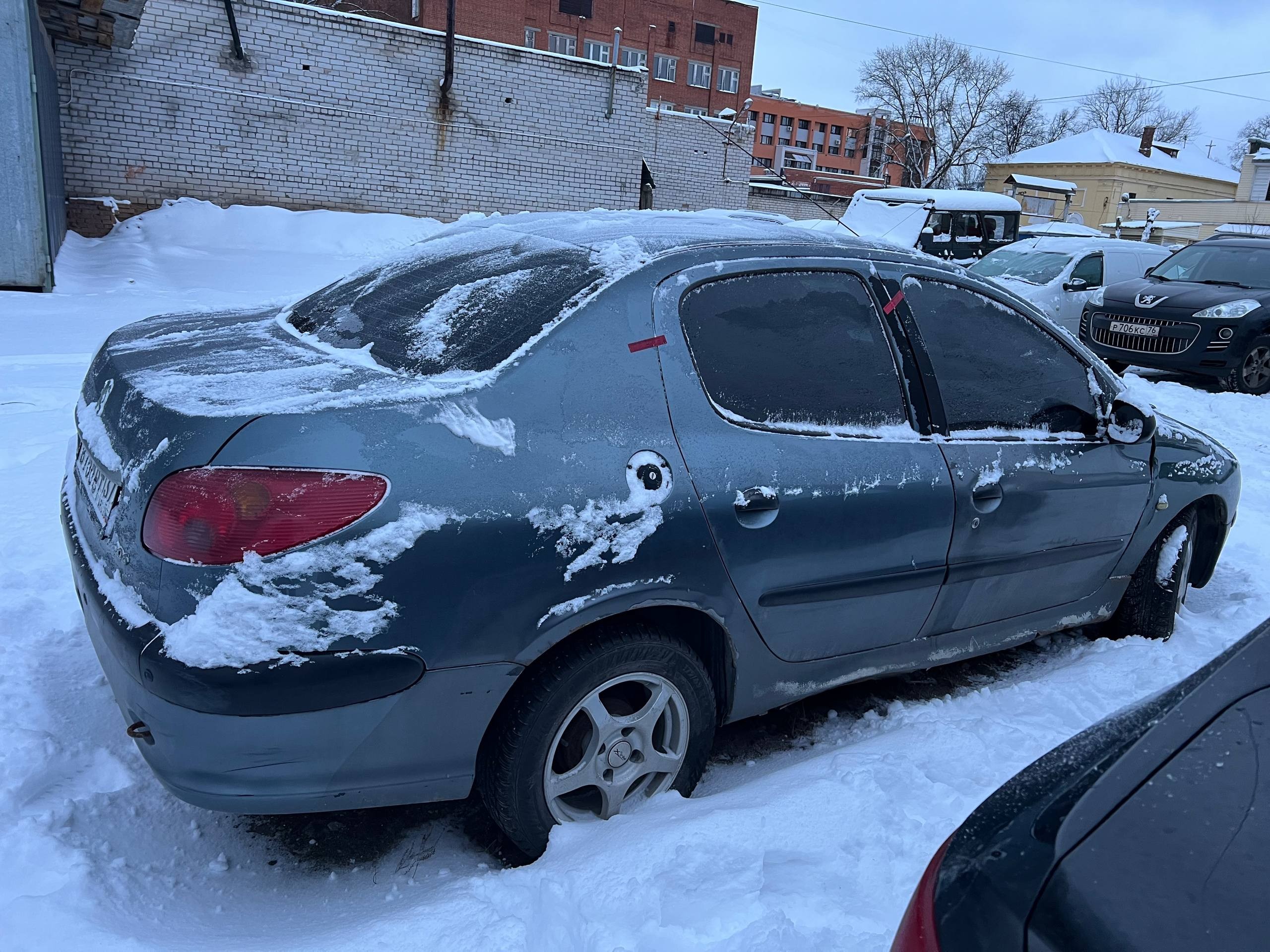 Автомобиль PEUGEOT 206 в удовлетворительном состоянии. Запустить двигатель, осмотреть подкапотное пространство, салон и багажный отсек не удалось по причине отсутствия ключей. На момент осмотра автомобиль в загрязненном состоянии. Кузов автомобиля с множественными повреждениями: ➢переднее правое крыло- вздутие, коррозия, сколы ➢капот- вздутие, коррозия, сколы ➢переднее левое крыло- вздутие, коррозия, сколы ➢передняя левая дверь- вздутие, коррозия, сколы ➢левый порог- вздутие, коррозия, сколы ➢заднее левое крыло- коррозия, сколы ➢заднее правое крыло- вздутие, коррозия, сколы ➢задняя левая дверь- вздутие, коррозия, сколы Вторично окрашены: ➢капот ➢переднее левое крыло ➢передняя левая дверь ➢задняя левая дверь ➢крышка багажника ➢заднее правое крыло ➢задняя правая дверь ➢передняя правая дверь ➢переднее правое крыло Фары, задние фонари, стекла визуально в удовлетворительном состоянии, имеются дефекты в виде царапин. Зимние шины в удовлетворительном состоянии. Легкосплавные диски в неудовлетворительном состоянии, имеются дефекты эксплуатации в виде царапин, сколов, коррозии. Данный отчет актуален на момент осмотра. Автоэксперт не даёт гарантии на возможные будущие неисправности/поломки/ошибки. Автоэксперт не гарантирует отсутствие дополнительных скрытых дефектов и точность показаний ЛКП.