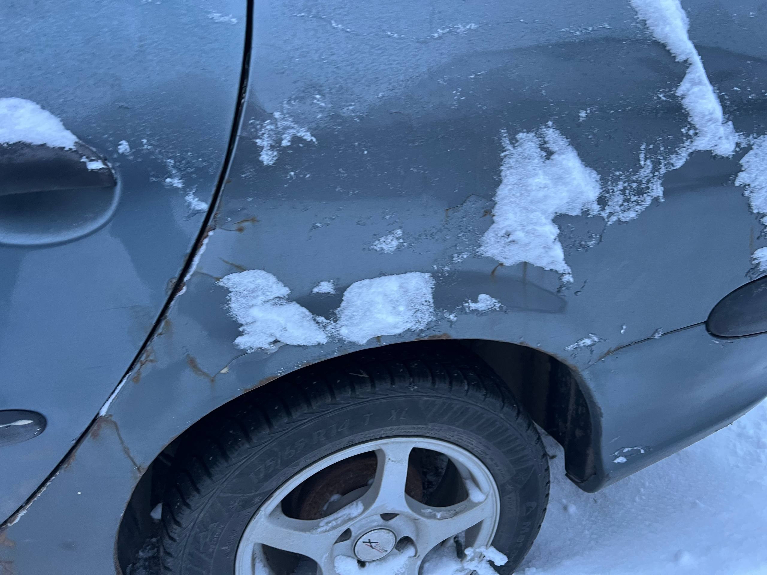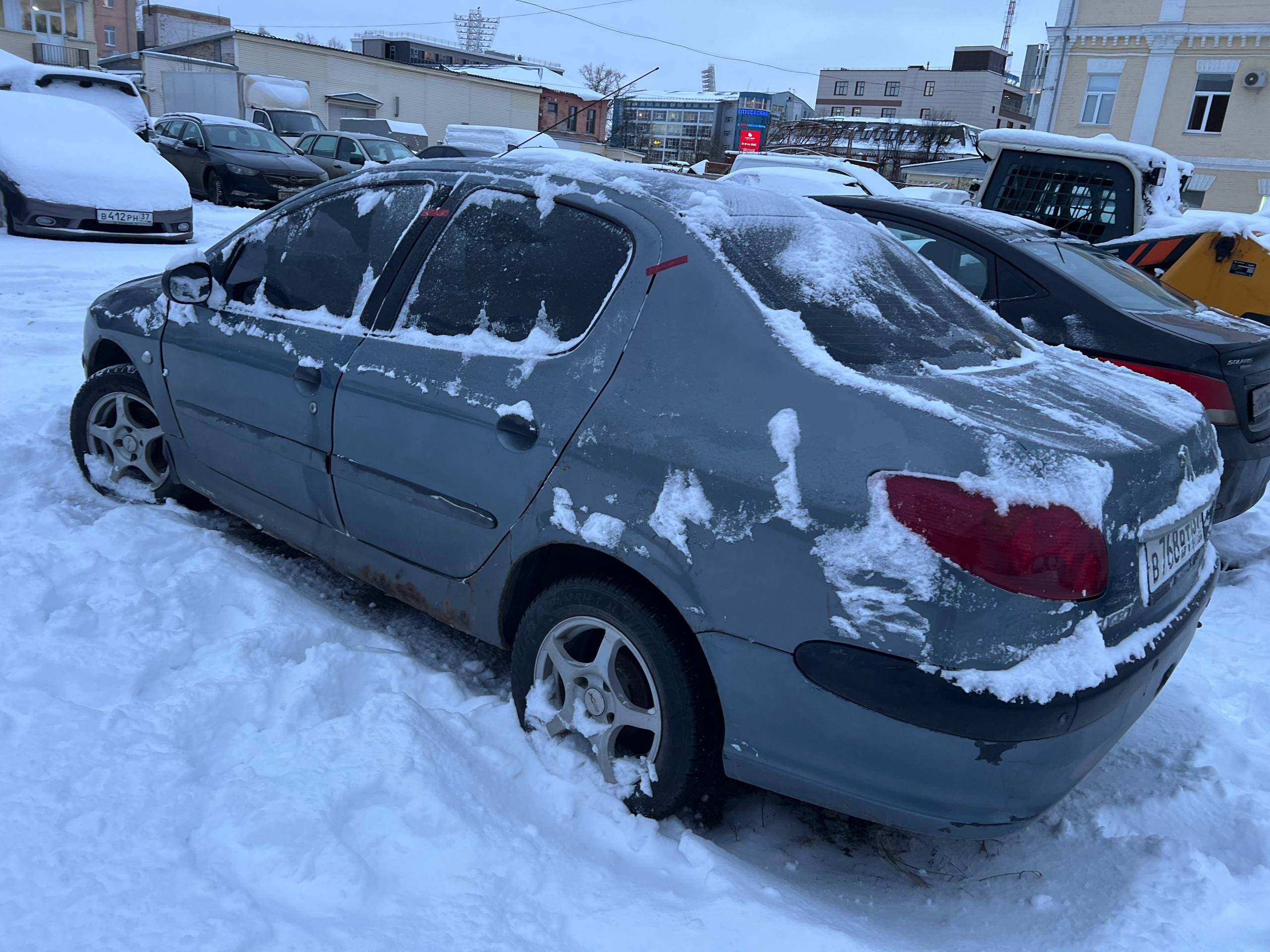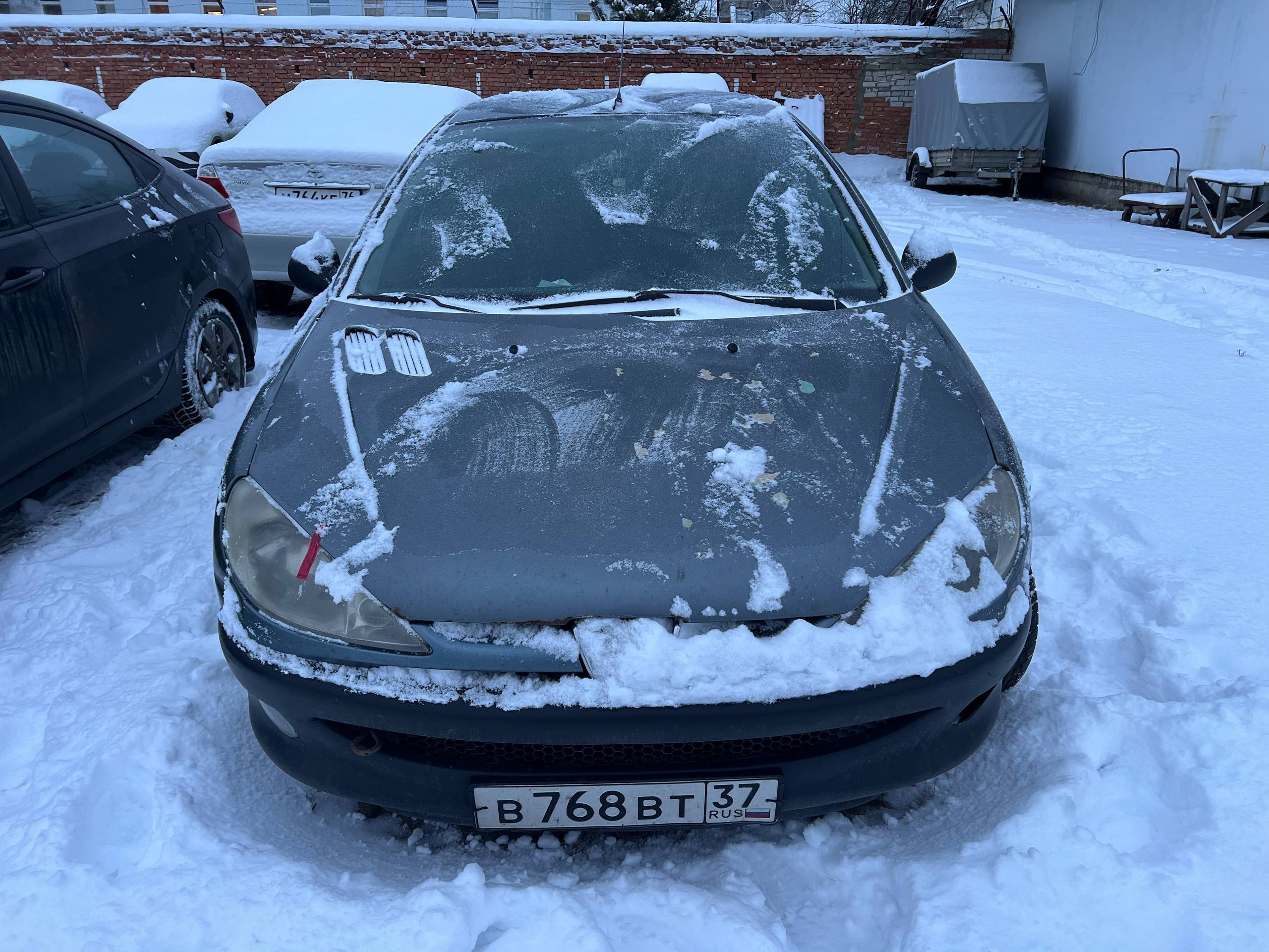 Автомобиль PEUGEOT 206 в удовлетворительном состоянии. Запустить двигатель, осмотреть подкапотное пространство, салон и багажный отсек не удалось по причине отсутствия ключей. На момент осмотра автомобиль в загрязненном состоянии. Кузов автомобиля с множественными повреждениями: ➢переднее правое крыло- вздутие, коррозия, сколы ➢капот- вздутие, коррозия, сколы ➢переднее левое крыло- вздутие, коррозия, сколы ➢передняя левая дверь- вздутие, коррозия, сколы ➢левый порог- вздутие, коррозия, сколы ➢заднее левое крыло- коррозия, сколы ➢заднее правое крыло- вздутие, коррозия, сколы ➢задняя левая дверь- вздутие, коррозия, сколы Вторично окрашены: ➢капот ➢переднее левое крыло ➢передняя левая дверь ➢задняя левая дверь ➢крышка багажника ➢заднее правое крыло ➢задняя правая дверь ➢передняя правая дверь ➢переднее правое крыло Фары, задние фонари, стекла визуально в удовлетворительном состоянии, имеются дефекты в виде царапин. Зимние шины в удовлетворительном состоянии. Легкосплавные диски в неудовлетворительном состоянии, имеются дефекты эксплуатации в виде царапин, сколов, коррозии. Данный отчет актуален на момент осмотра. Автоэксперт не даёт гарантии на возможные будущие неисправности/поломки/ошибки. Автоэксперт не гарантирует отсутствие дополнительных скрытых дефектов и точность показаний ЛКП.