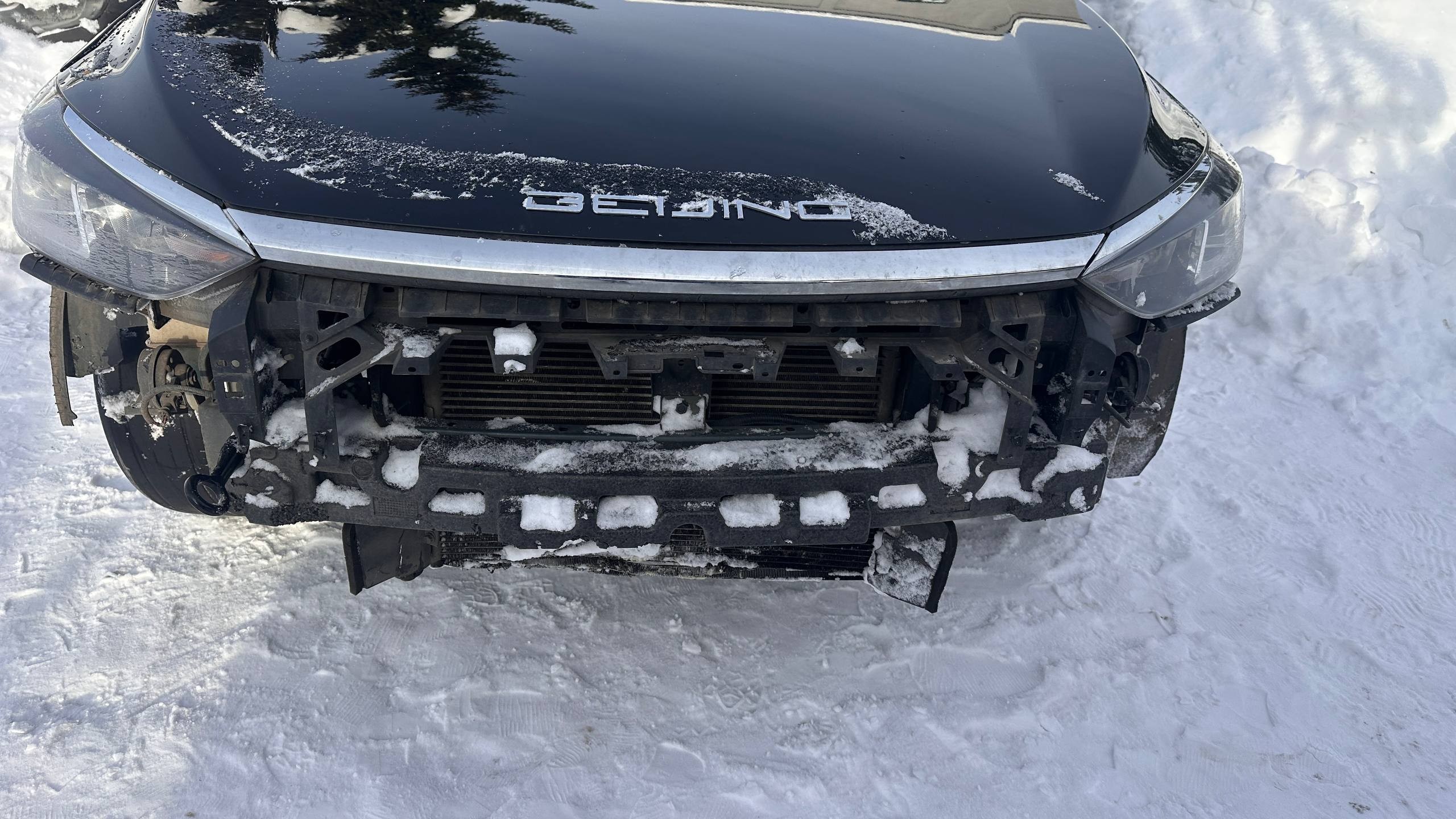 Автомобиль BAIC U5 PLUS в неудовлетворительном состоянии. Автомобиль после ДТП. На момент осмотра автомобиль в загрязненном состоянии (присутствует слой наледи). Кузов автомобиля с множественными повреждениями: ➢передний бампер- отсутствует, разрушение ➢переднее левое крыло- вмятина ➢задний бампер- отсутствует, разрушение ➢повреждения радиатора Автомобиль в заводском окрасе. Подкапотное пространство загрязненное. Обнаружены повреждения радиатора. Отсутствует охлаждающая жидкость. Двигатель запускается, но не рекомендуется при данных повреждениях. Фары, задние фонари, стекла визуально в удовлетворительном состоянии, имеются дефекты в виде царапин. Летние шины в неудовлетворительном состоянии. Легкосплавные диски в удовлетворительном состоянии, имеются дефекты эксплуатации в виде царапин, сколов. Салон в хорошем состоянии, имеются эксплуатационные дефекты (царапины, потёртости), рекомендована химчистка. Руль, рычаг КПП в хорошем состоянии имеют небольшие потертости. Багажный отсек в удовлетворительном состоянии, загрязненный, с эксплуатационными дефектами пластиковых элементов в виде потёртостей, царапин. Запасное колесо в наличии. Данный отчет актуален на момент осмотра. Автоэксперт не даёт гарантии на возможные будущие неисправности/поломки/ошибки. Автоэксперт не гарантирует отсутствие дополнительных скрытых дефектов и точность показаний ЛКП.