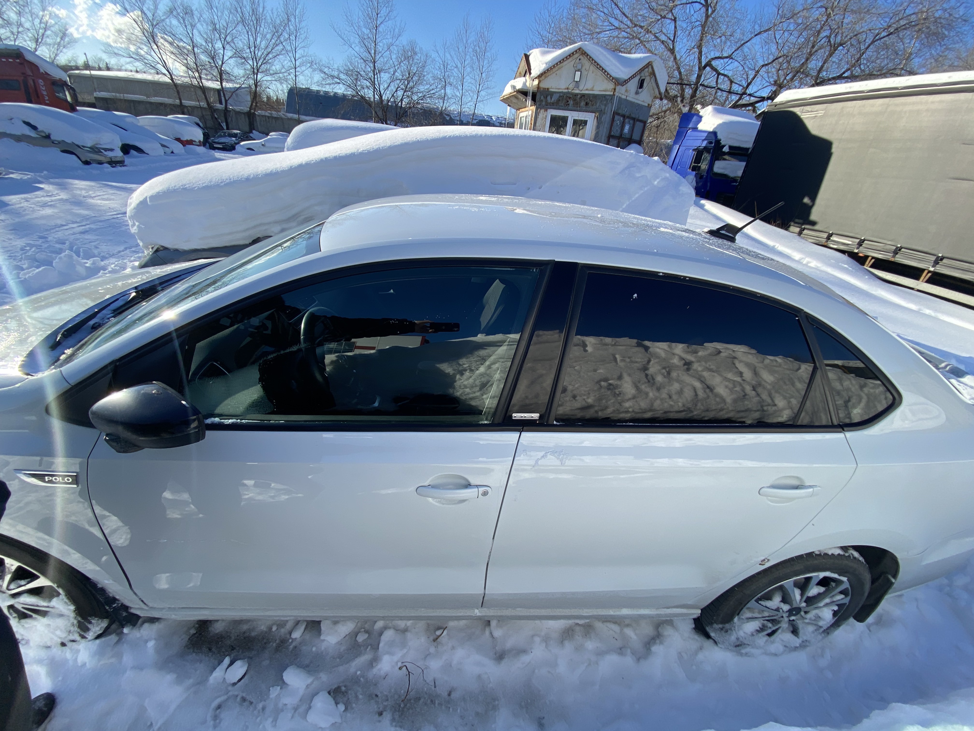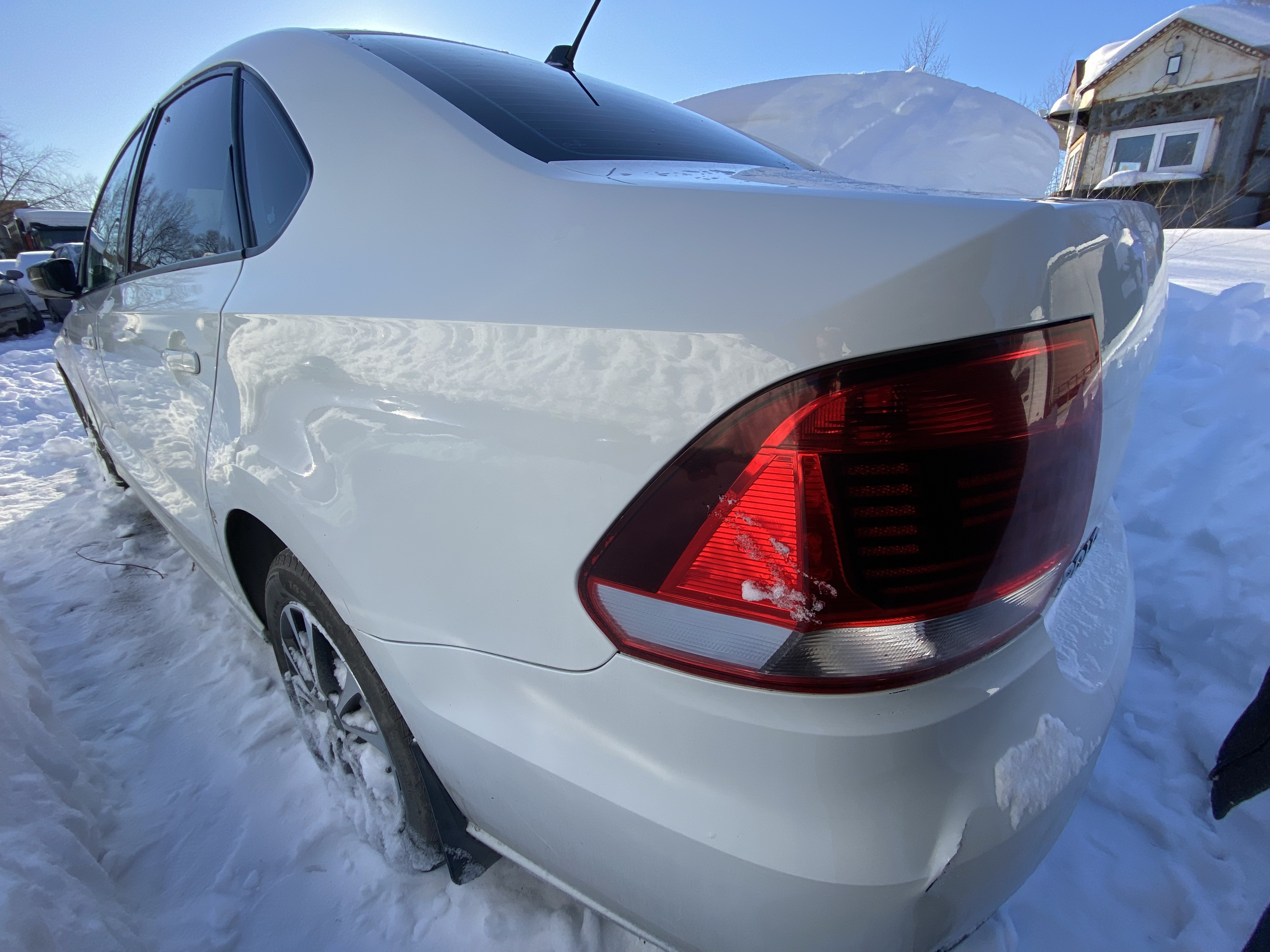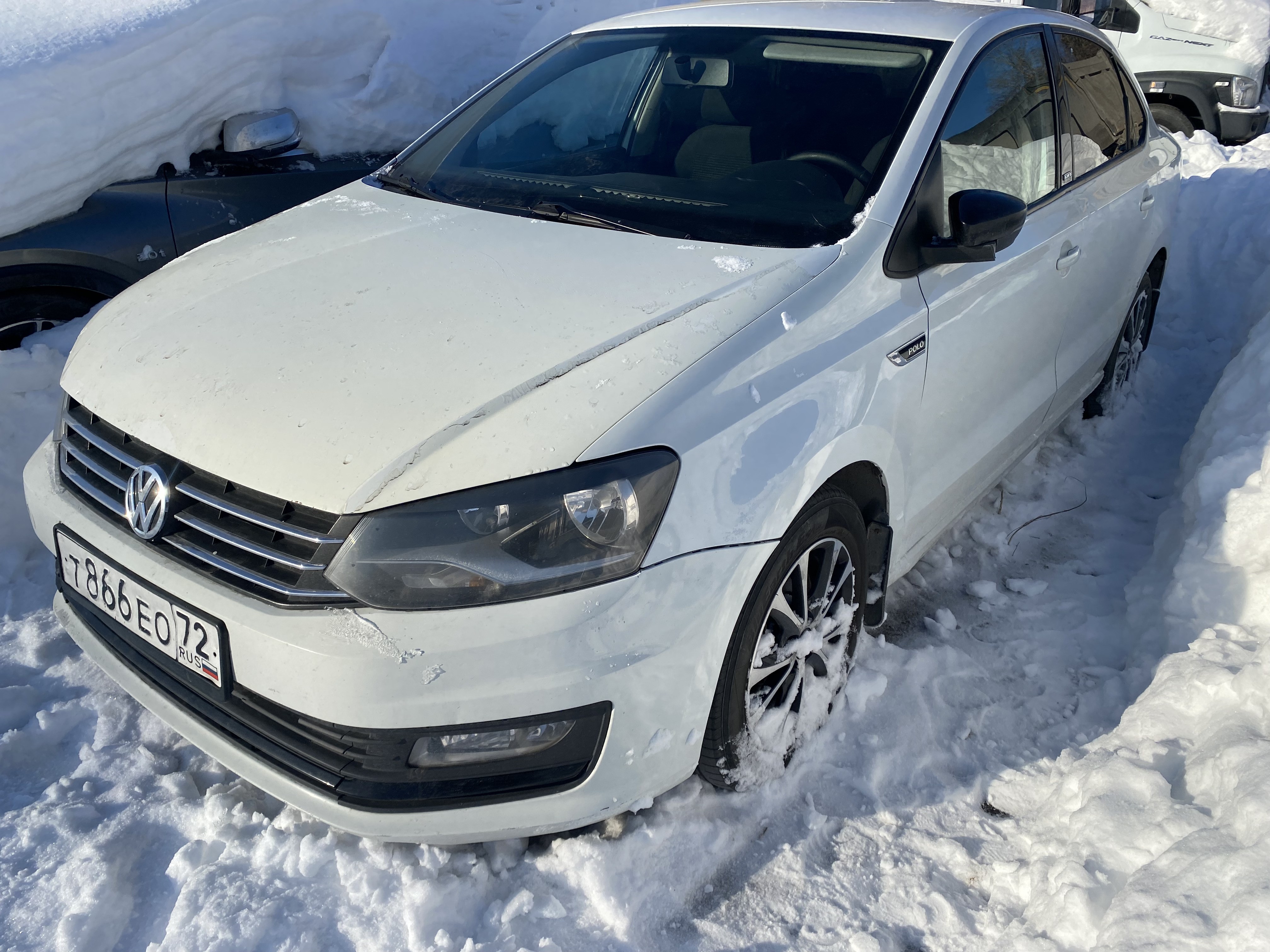 Автомобиль Volkswagen Polo в удовлетворительном состоянии. Запустить двигатель, осмотреть подкапотное пространство, багажное отделение и салон не удалось по причине отсутствия ключей. На момент осмотра автомобиль в загрязненном состоянии (присутствует слой наледи). Кузов автомобиля с множественными повреждениями: ➢ветровое стекло- трещина ➢капот- вздутие, сколы, смещение ➢правая фара- сколы ➢переднее правое крыло- вздутие, коррозия, сколы, смещение ➢передний бампер- царапины, сколы, смещение ➢левая фара- сколы ➢переднее левое крыло- вздутие, царапины, сколы ➢крыша- царапины, сколы ➢передняя левая дверь- царапины, сколы ➢задняя левая дверь- царапины, сколы ➢заднее левое крыло- царапины, коррозия, сколы ➢задний бампер- царапины, сколы, трещины, смещение ➢крышка багажника- вмятина, сколы ➢заднее правое крыло- сколы ➢задняя правая дверь- сколы ➢передняя правая дверь- сколы Вторично окрашены: ➢капот ➢переднее левое крыло ➢переднее правое крыло Фары, задние фонари, стекла визуально в удовлетворительном состоянии, имеются дефекты в виде царапин. На ветровом стекле имеется трещина. Летние шины в удовлетворительном состоянии. Легкосплавные диски в удовлетворительном состоянии, имеются дефекты эксплуатации в виде царапин, сколов. Данный отчет актуален на момент осмотра. Автоэксперт не даёт гарантии на возможные будущие неисправности/поломки/ошибки. Автоэксперт не гарантирует отсутствие дополнительных скрытых дефектов и точность показаний ЛКП.