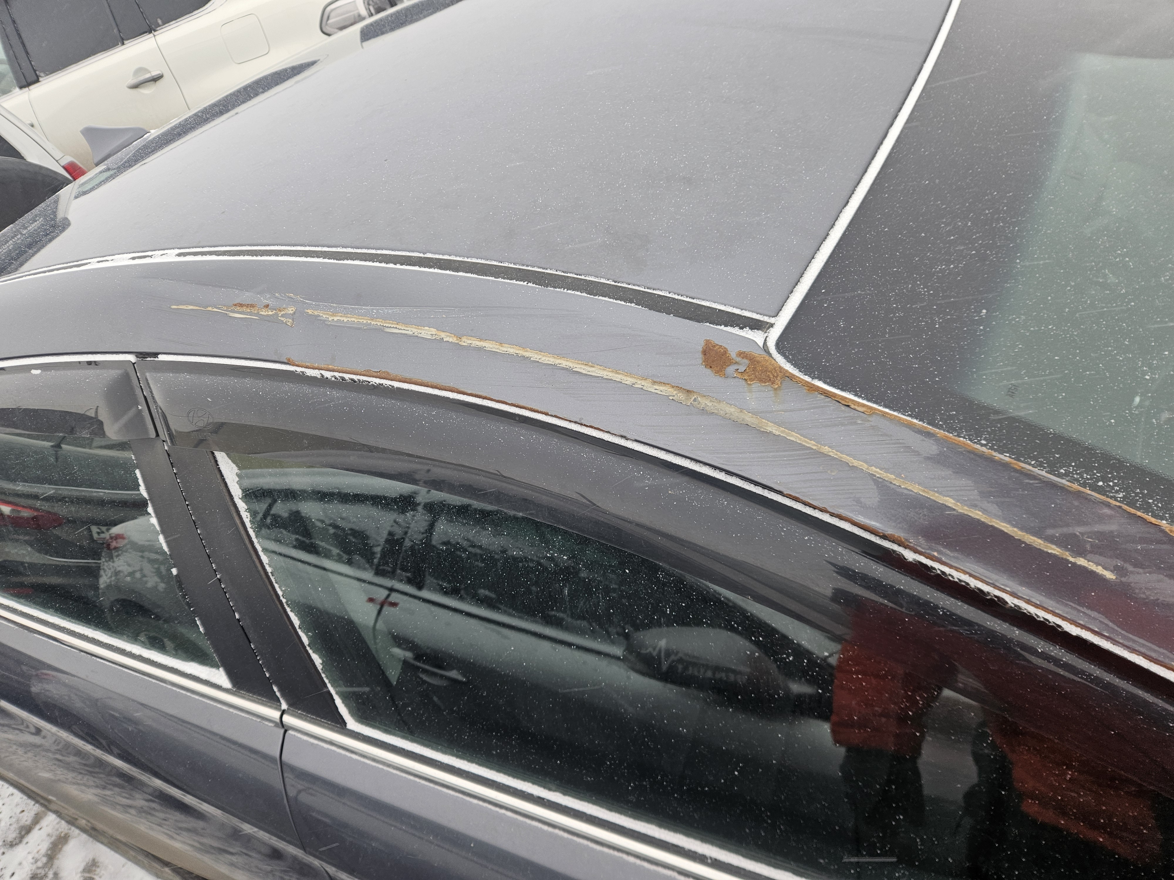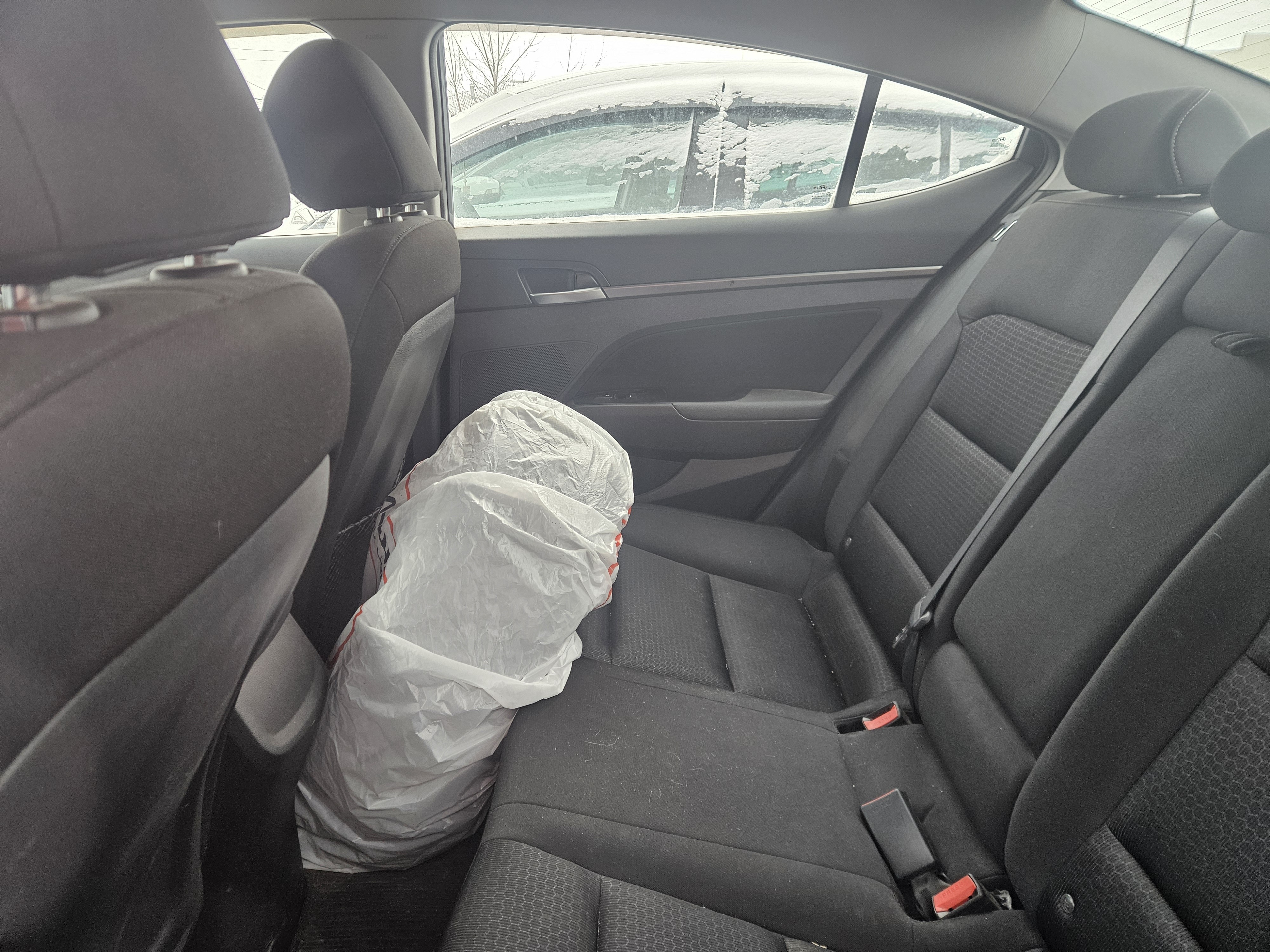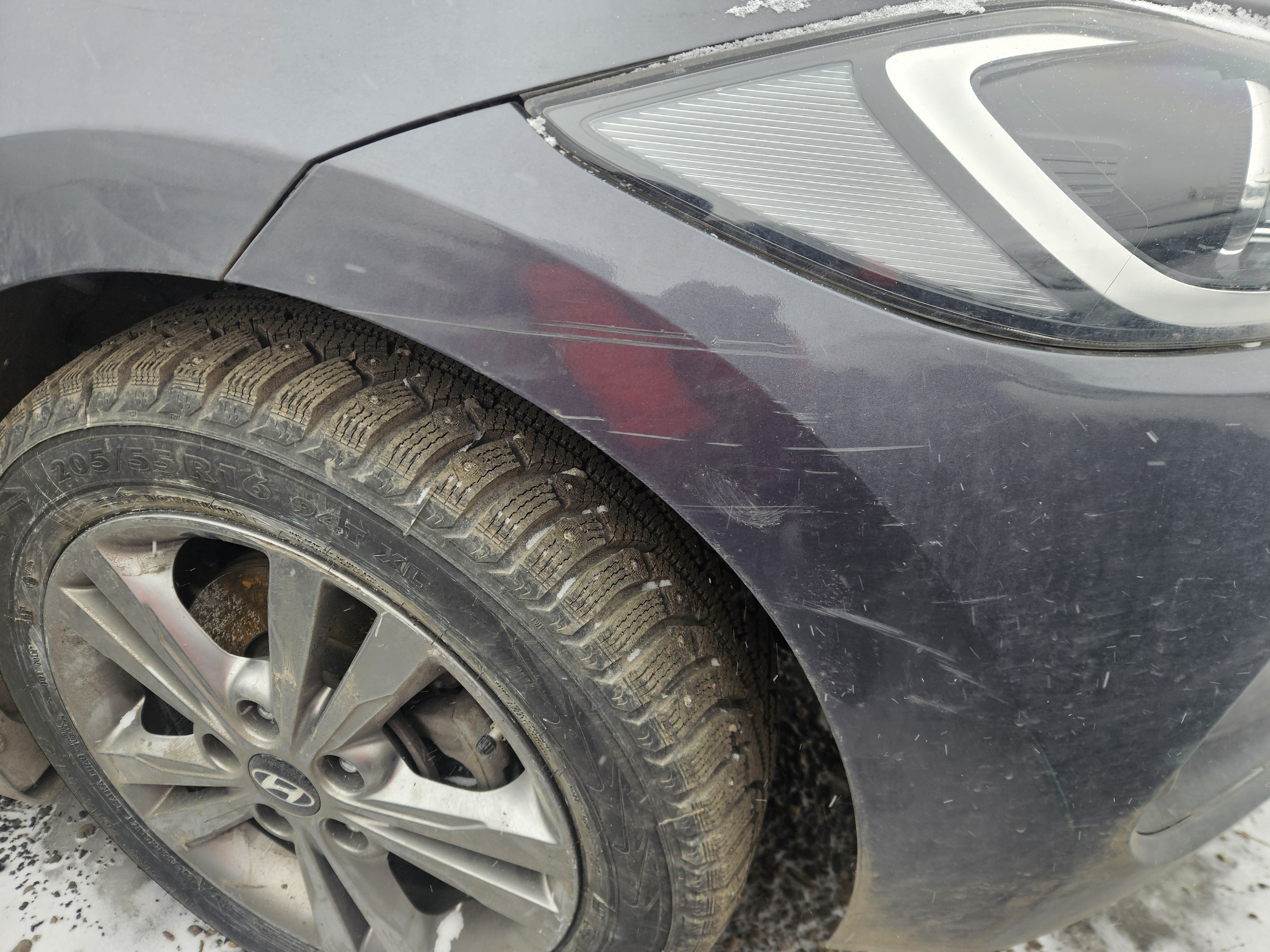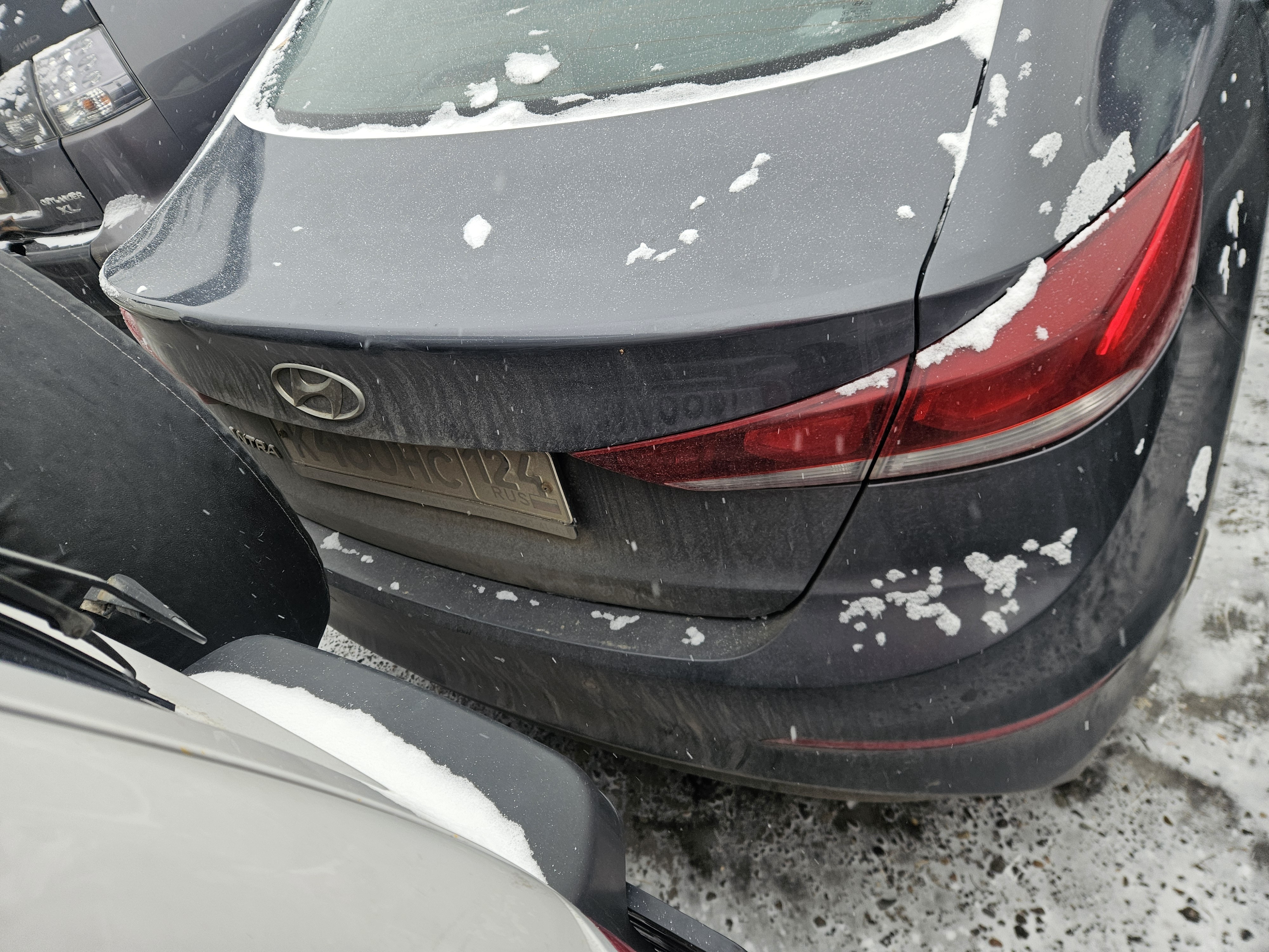 Автомобиль Hyundai Elantra в удовлетворительном состоянии. Запустить двигатель, осмотреть подкапотное пространство, багажное отделение и салон не удалось по причине отсутствия ключей. На момент осмотра автомобиль в загрязненном состоянии (присутствует слой наледи). Кузов автомобиля с множественными повреждениями: ➢правое дверное зеркало- разрушение ➢передний бампер- царапины, разрушение, сколы, трещины ➢крыша- коррозия, сколы ➢левая стойка- коррозия, сколы ➢правая стойка- коррозия, сколы ➢ветровое стекло- трещина ➢заднее правое крыло- царапины, коррозия, сколы ➢задняя правая дверь- царапины ➢заднее левое крыло- коррозия, сколы ➢крышка багажника- вмятина, сколы Вторично окрашены: ➢заднее левое крыло Фары, задние фонари, стекла визуально в удовлетворительном состоянии, имеются дефекты в виде царапин, трещины. Разрушение правого дверного зеркала. На ветровом стекле имеется трещина. Зимние шины в неудовлетворительном состоянии. Легкосплавные диски в удовлетворительном состоянии, имеются дефекты эксплуатации в виде царапин, сколов. Данный отчет актуален на момент осмотра. Автоэксперт не даёт гарантии на возможные будущие неисправности/поломки/ошибки. Автоэксперт не гарантирует отсутствие дополнительных скрытых дефектов и точность показаний ЛКП.