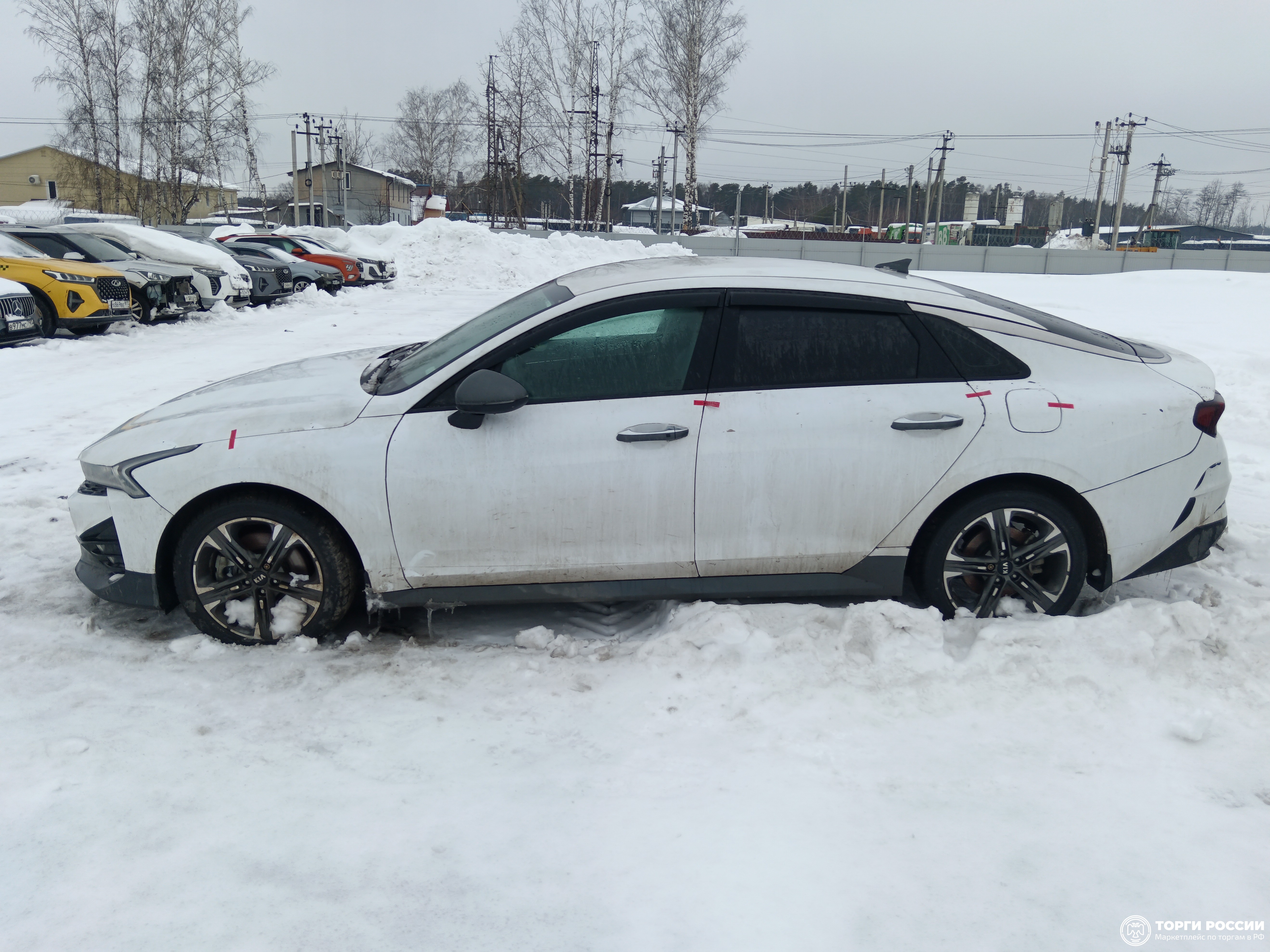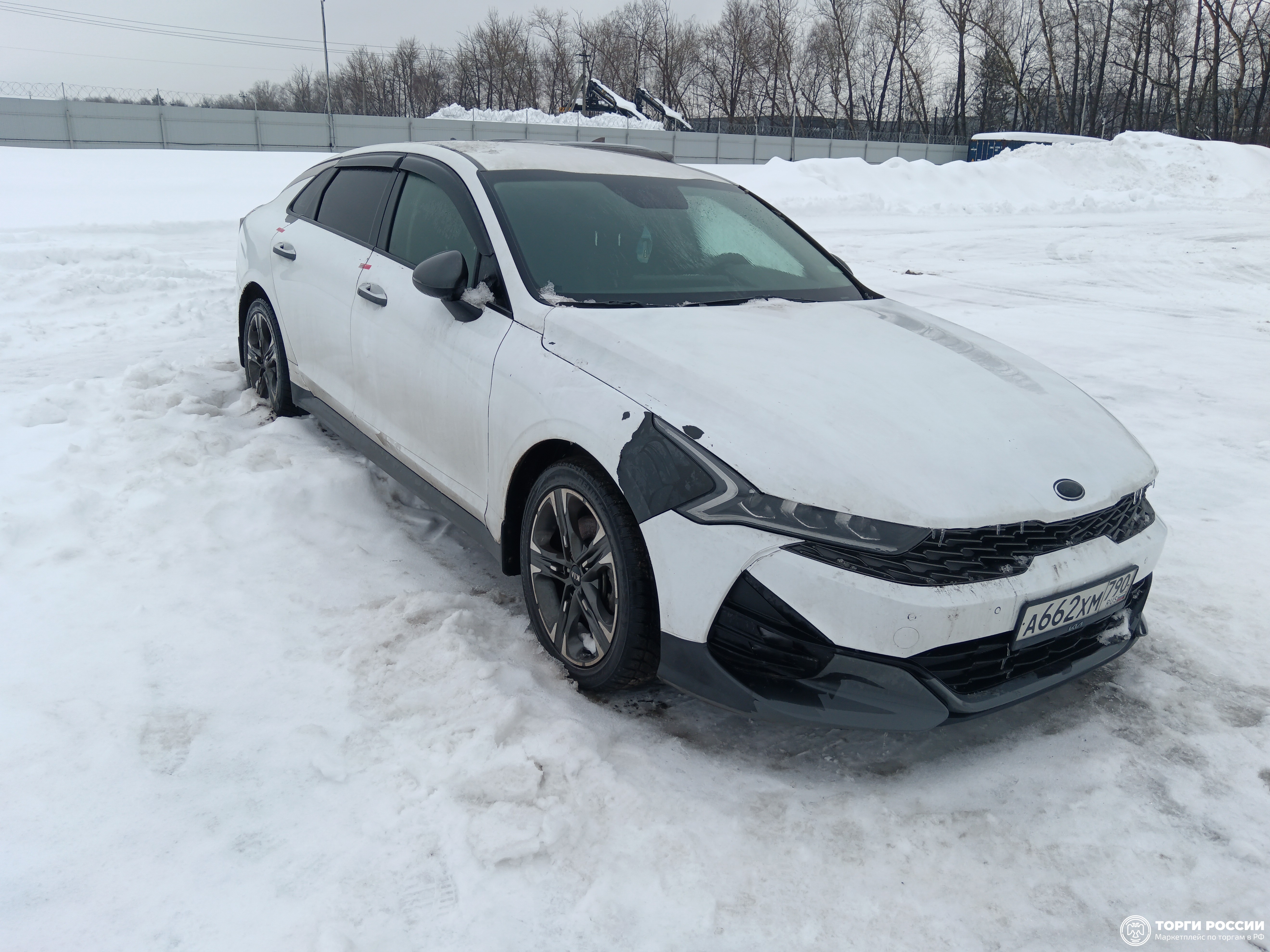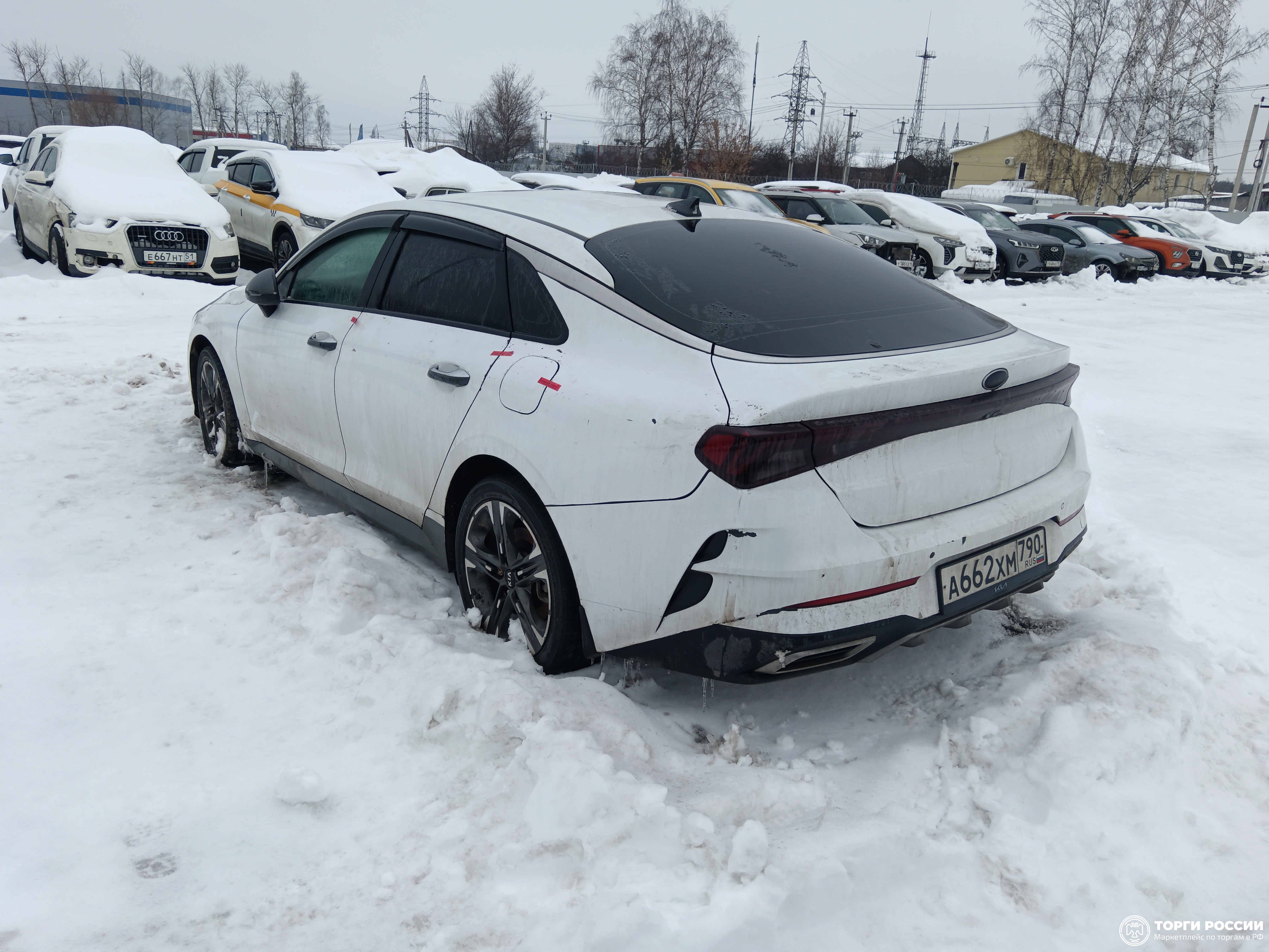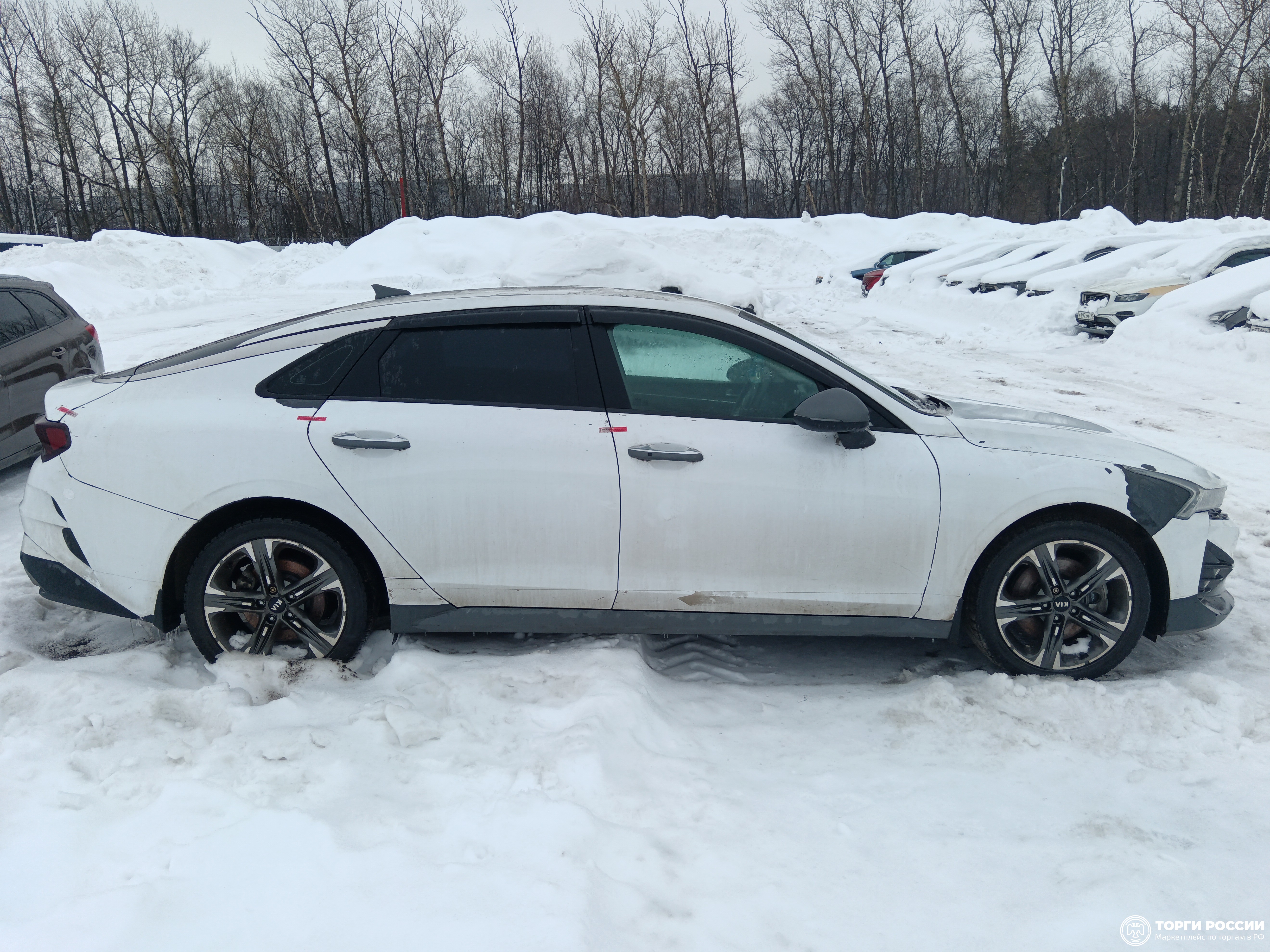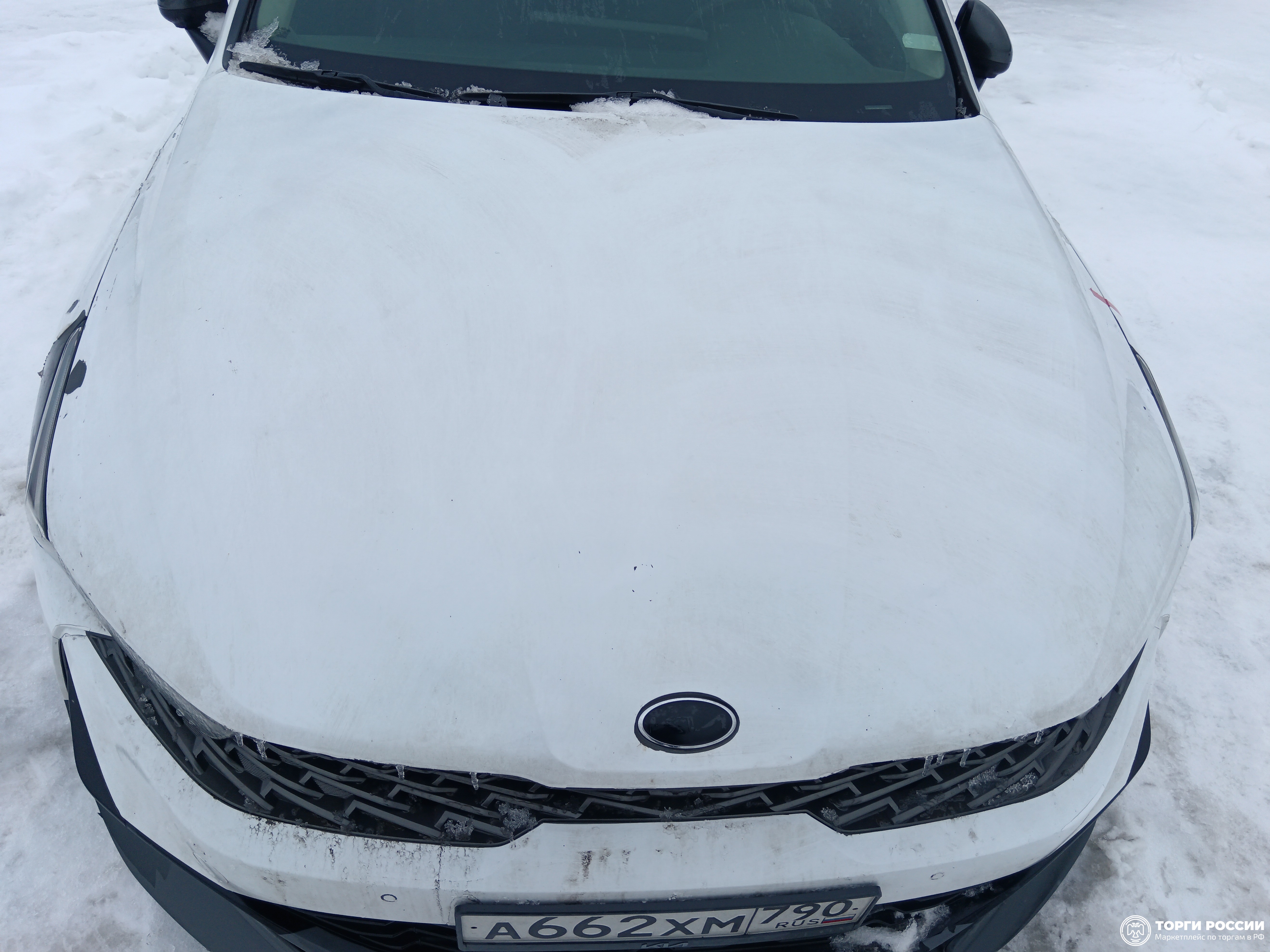 Автомобиль KIA K5 в хорошем состоянии. Запустить двигатель, осмотреть подкапотное пространство, багажное отделение и салон не удалось по причине отсутствия ключей. На момент осмотра автомобиль в загрязненном состоянии (присутствует слой наледи). Кузов автомобиля визуально без повреждений. Автомобиль в заводском окрасе. Кузов автомобиля покрыт защитной плёнкой. Фары, задние фонари, стекла визуально в хорошем состоянии, имеются дефекты в виде царапин. Зимние шины в хорошем состоянии. Легкосплавные диски в удовлетворительном состоянии, имеются дефекты эксплуатации в виде царапин, сколов. Данный отчет актуален на момент осмотра. Автоэксперт не даёт гарантии на возможные будущие неисправности/поломки/ошибки. Автоэксперт не гарантирует отсутствие дополнительных скрытых дефектов и точность показаний ЛКП.
