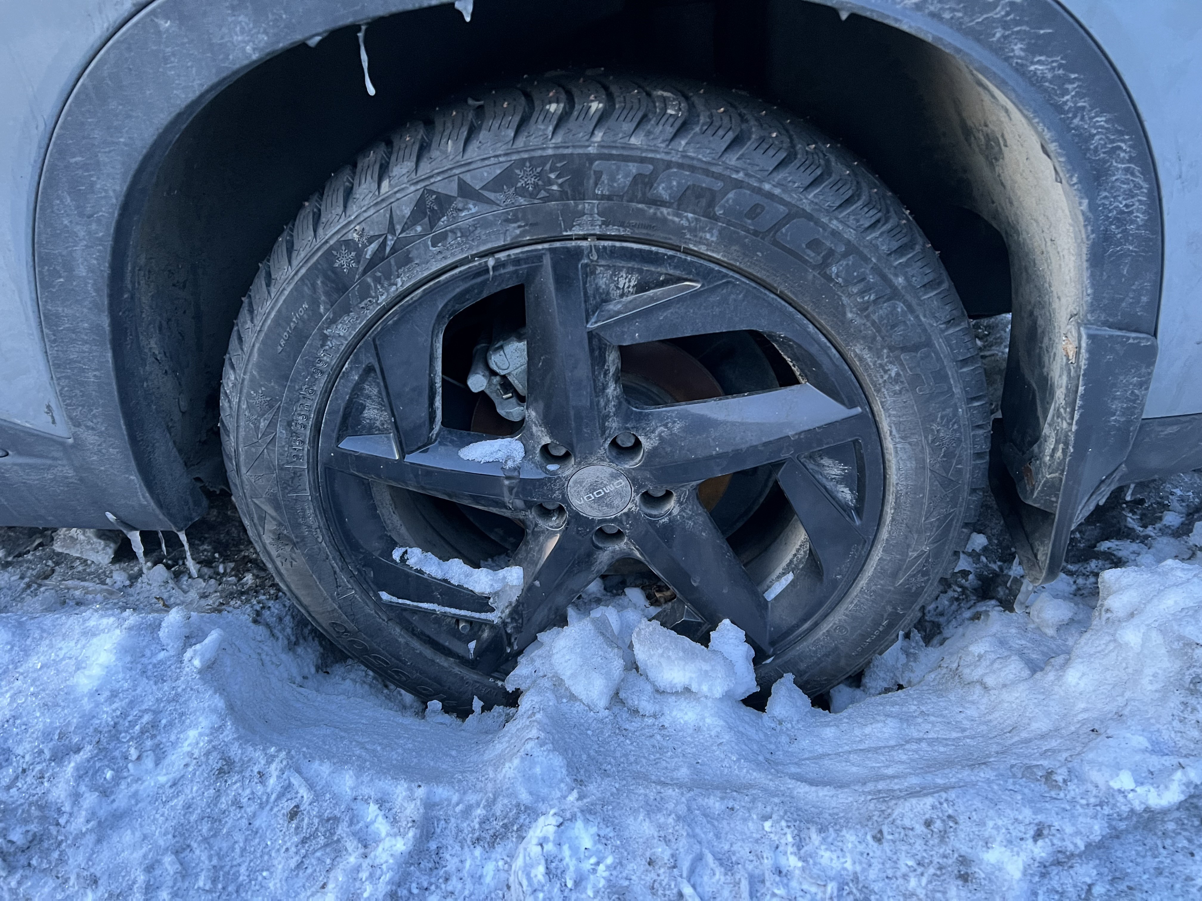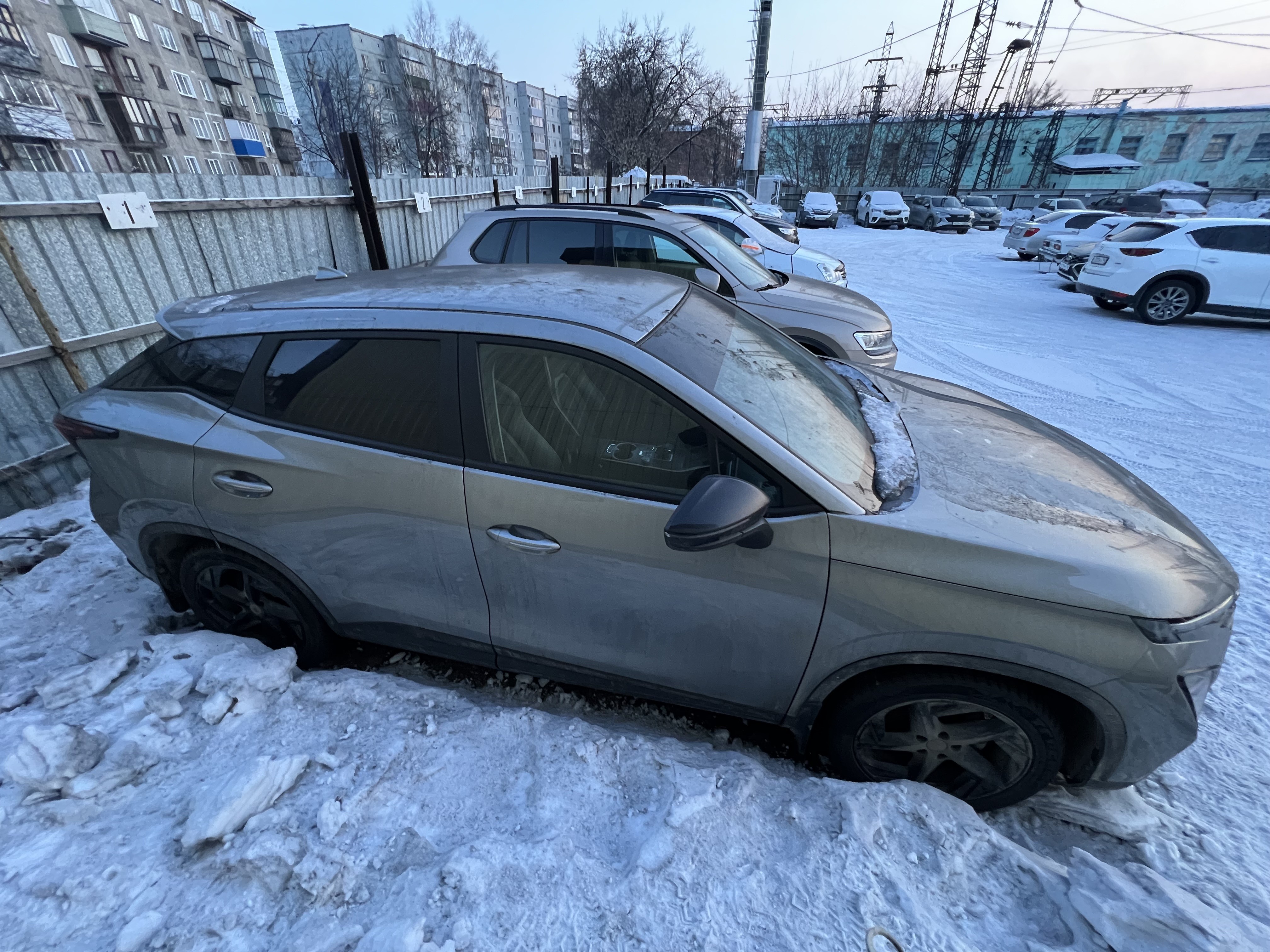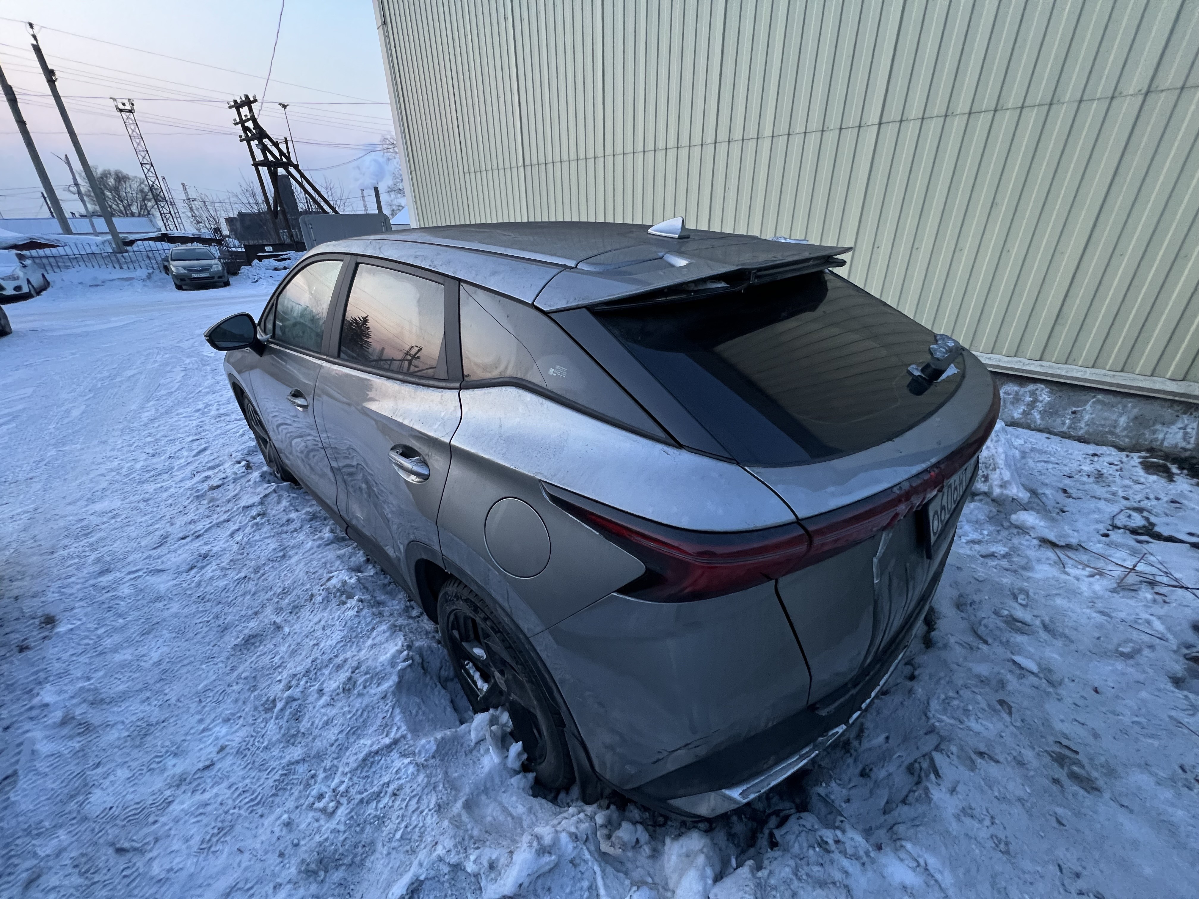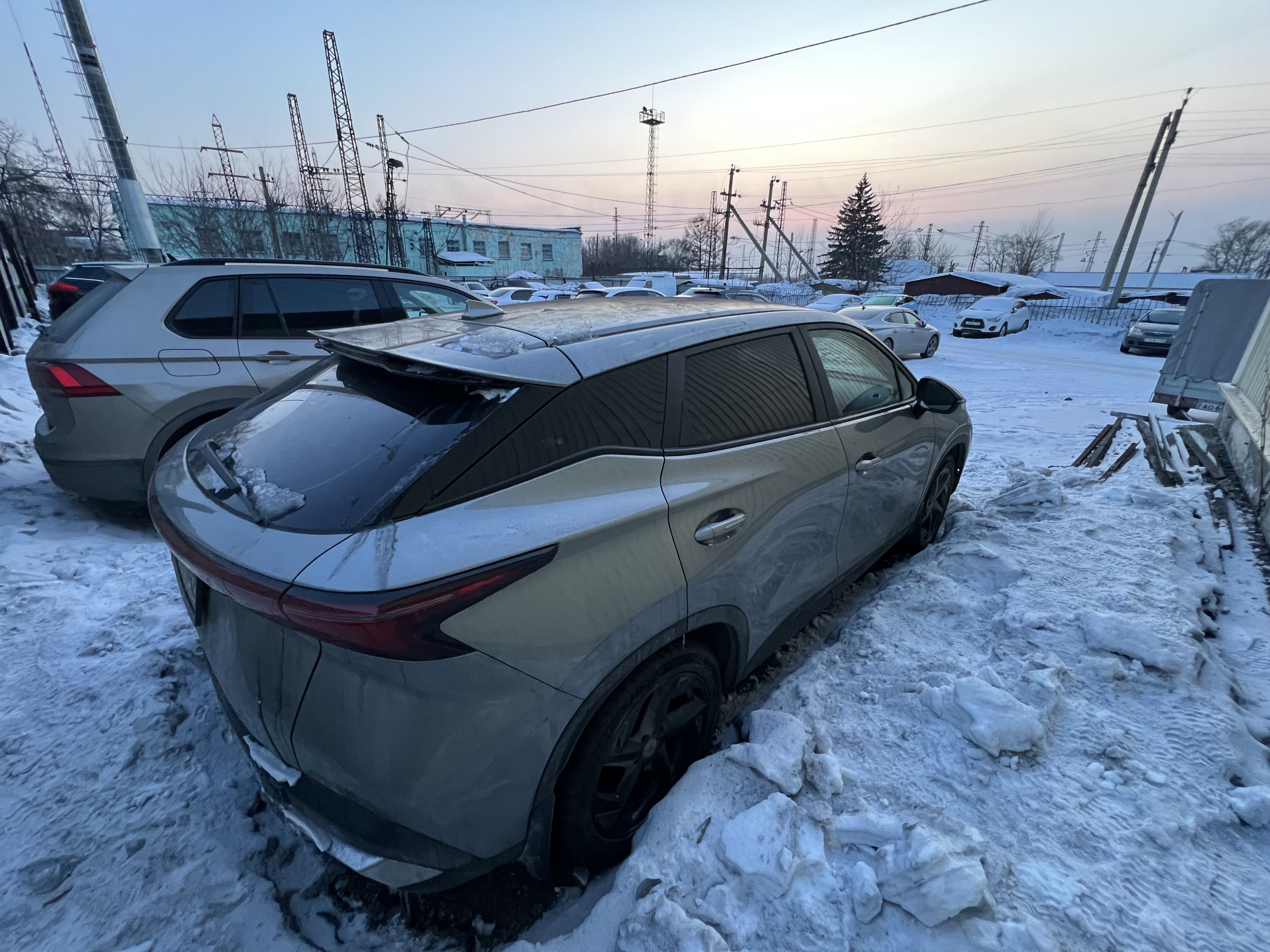 Автомобиль Omoda C5 в хорошем состоянии. Запустить двигатель, осмотреть подкапотное пространство, багажное отделение и салон не удалось по причине отсутствия ключей. На момент осмотра автомобиль в загрязненном состоянии (присутствует слой наледи). Кузов автомобиля с повреждениями: ➢задний бампер- вмятина, царапины, сколы ➢задняя правая дверь- вмятина, царапины, сколы Автомобиль в заводском окрасе (измерения толщиномера в миллиметрах). Фары, задние фонари, стекла визуально в хорошем состоянии, имеются дефекты в виде царапин. Зимние шины в хорошем состоянии. Легкосплавные диски в хорошем состоянии, имеются дефекты эксплуатации в виде царапин, сколов. Данный отчет актуален на момент осмотра. Автоэксперт не даёт гарантии на возможные будущие неисправности/поломки/ошибки. Автоэксперт не гарантирует отсутствие дополнительных скрытых дефектов и точность показаний ЛКП.