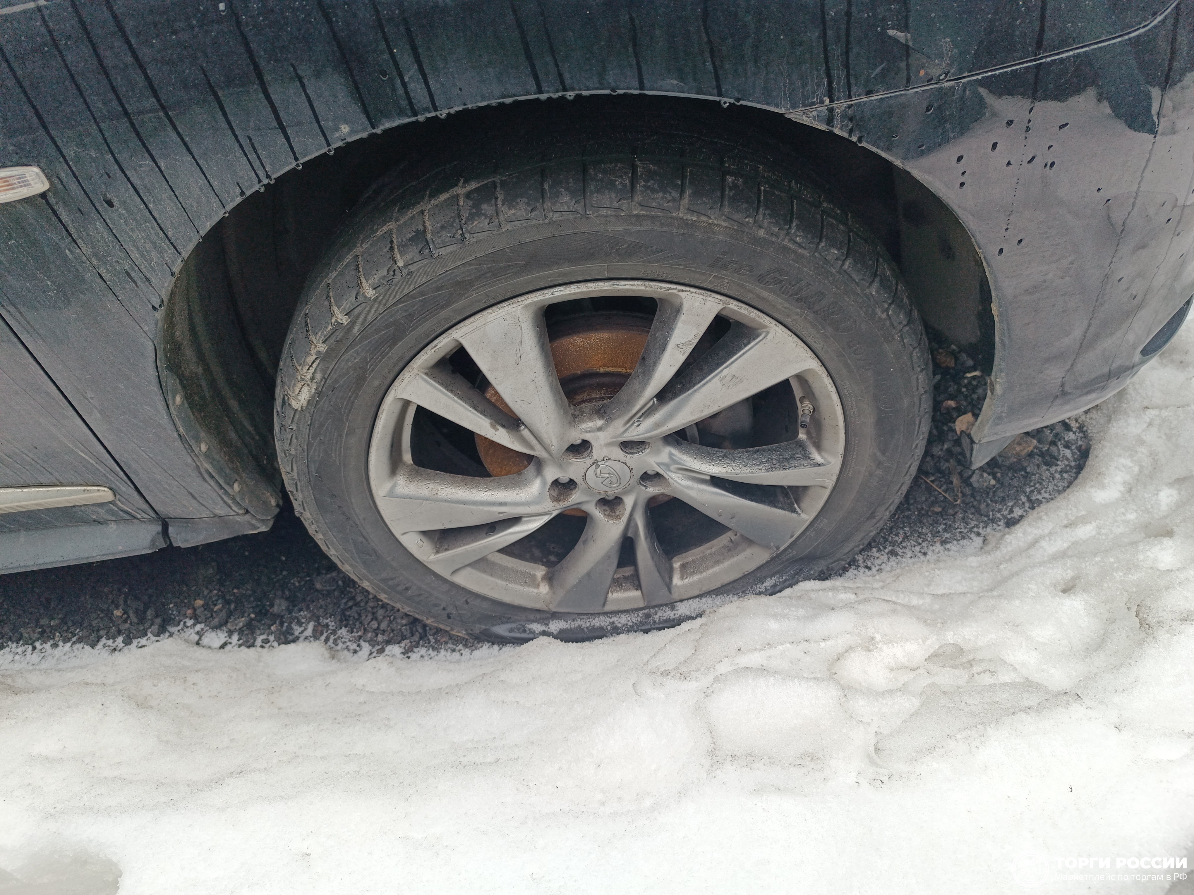 Автомобиль Infiniti JX35 в хорошем состоянии. Запустить двигатель, осмотреть подкапотное пространство, багажное отделение и салон не удалось по причине отсутствия ключей. На момент осмотра автомобиль в загрязненном состоянии. Кузов автомобиля с незначительными повреждениями: ➢задний бампер- смещение Автомобиль в заводском окрасе. Фары, задние фонари, стекла визуально в хорошем состоянии, имеются дефекты в виде царапин. Зимние шины в неудовлетворительном состоянии. Легкосплавные диски в удовлетворительном состоянии, имеются дефекты эксплуатации в виде царапин, сколов. Данный отчет актуален на момент осмотра. Автоэксперт не даёт гарантии на возможные будущие неисправности/поломки/ошибки. Автоэксперт не гарантирует отсутствие дополнительных скрытых дефектов и точность показаний ЛКП.