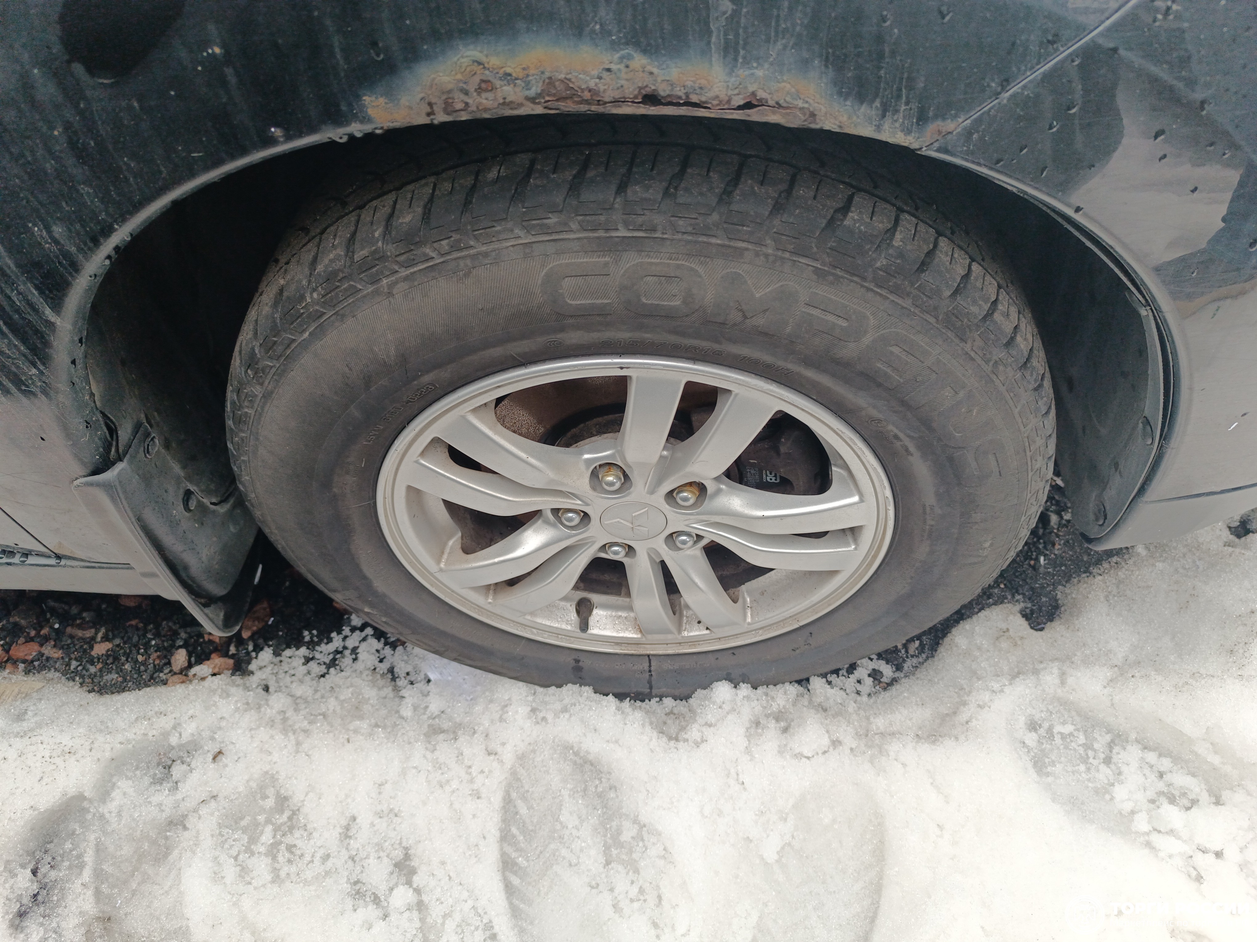Автомобиль Mitsubishi Outlander в удовлетворительном состоянии. Запустить двигатель, осмотреть подкапотное пространство, багажное отделение и салон не удалось по причине отсутствия ключей. На момент осмотра автомобиль в загрязненном состоянии. Кузов автомобиля с повреждениями: ➢крыша- коррозия, сколы ➢переднее левое крыло- вздутие, коррозия, сколы ➢заднее левое крыло- вздутие, коррозия, сколы ➢заднее правое крыло- вздутие, коррозия ➢переднее правое крыло- вздутие, коррозия, сколы Вторично окрашены: ➢задняя правая дверь Фары, задние фонари, стекла визуально в удовлетворительном состоянии, имеются дефекты в виде царапин. Зимние шины в удовлетворительном состоянии. Легкосплавные диски в удовлетворительном состоянии, имеются дефекты эксплуатации в виде царапин, сколов, коррозии. Данный отчет актуален на момент осмотра. Автоэксперт не даёт гарантии на возможные будущие неисправности/поломки/ошибки. Автоэксперт не гарантирует отсутствие дополнительных скрытых дефектов и точность показаний ЛКП.
