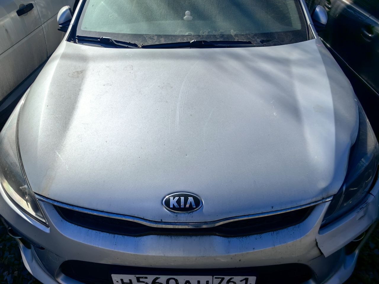 Автомобиль Kia Rio в удовлетворительном состоянии. Запустить двигатель, осмотреть подкапотное пространство, багажное отделение и салон не удалось, по причине того, что автомобиль опечатан. На момент осмотра автомобиль в загрязненном состоянии. Кузов автомобиля с повреждениями: ➢ветровое стекло- скол ➢передний бампер- царапины, разрыв, сколы, трещина ➢правое дверное зеркало- сколы ➢крыша- коррозия, сколы, вмятина ➢капот- сколы ➢левая фара- разрушение, трещина ➢переднее левое крыло- царапины, сколы, вмятина Вторично окрашены: ➢капот ➢крышка багажника ➢заднее правое крыло ➢задняя правая дверь ➢правый порог Фары, задние фонари, стекла визуально в удовлетворительном состоянии, имеются дефекты в виде царапин, трещин. На ветровом стекле имеется трещина, сколы. Разрушение левой фары. Летние шины в удовлетворительном состоянии. Легкосплавные диски в удовлетворительном состоянии, имеются дефекты эксплуатации в виде царапин, сколов. Данный отчет актуален на момент осмотра. Автоэксперт не даёт гарантии на возможные будущие неисправности/поломки/ошибки. Автоэксперт не гарантирует отсутствие дополнительных скрытых дефектов и точность показаний ЛКП.