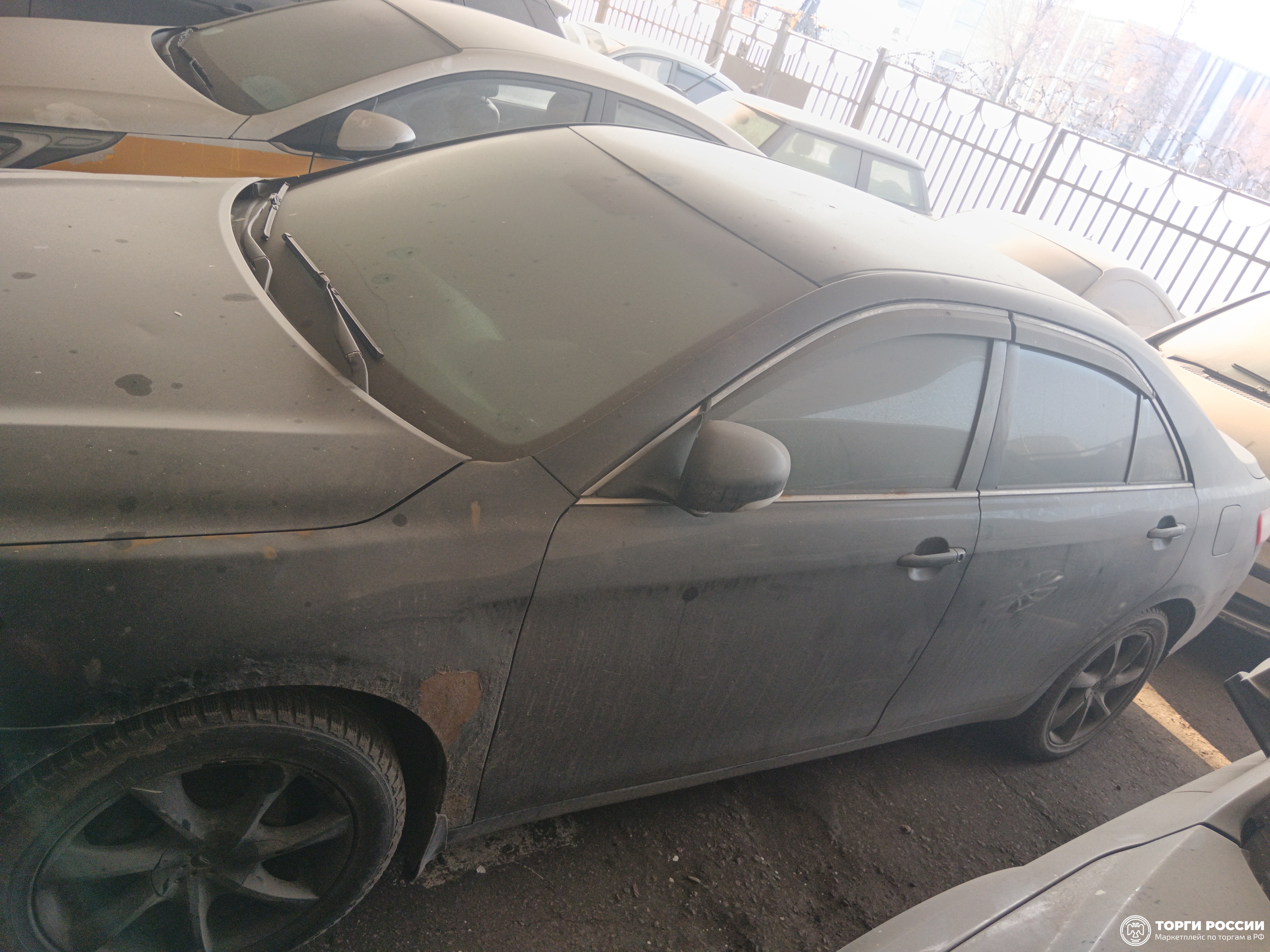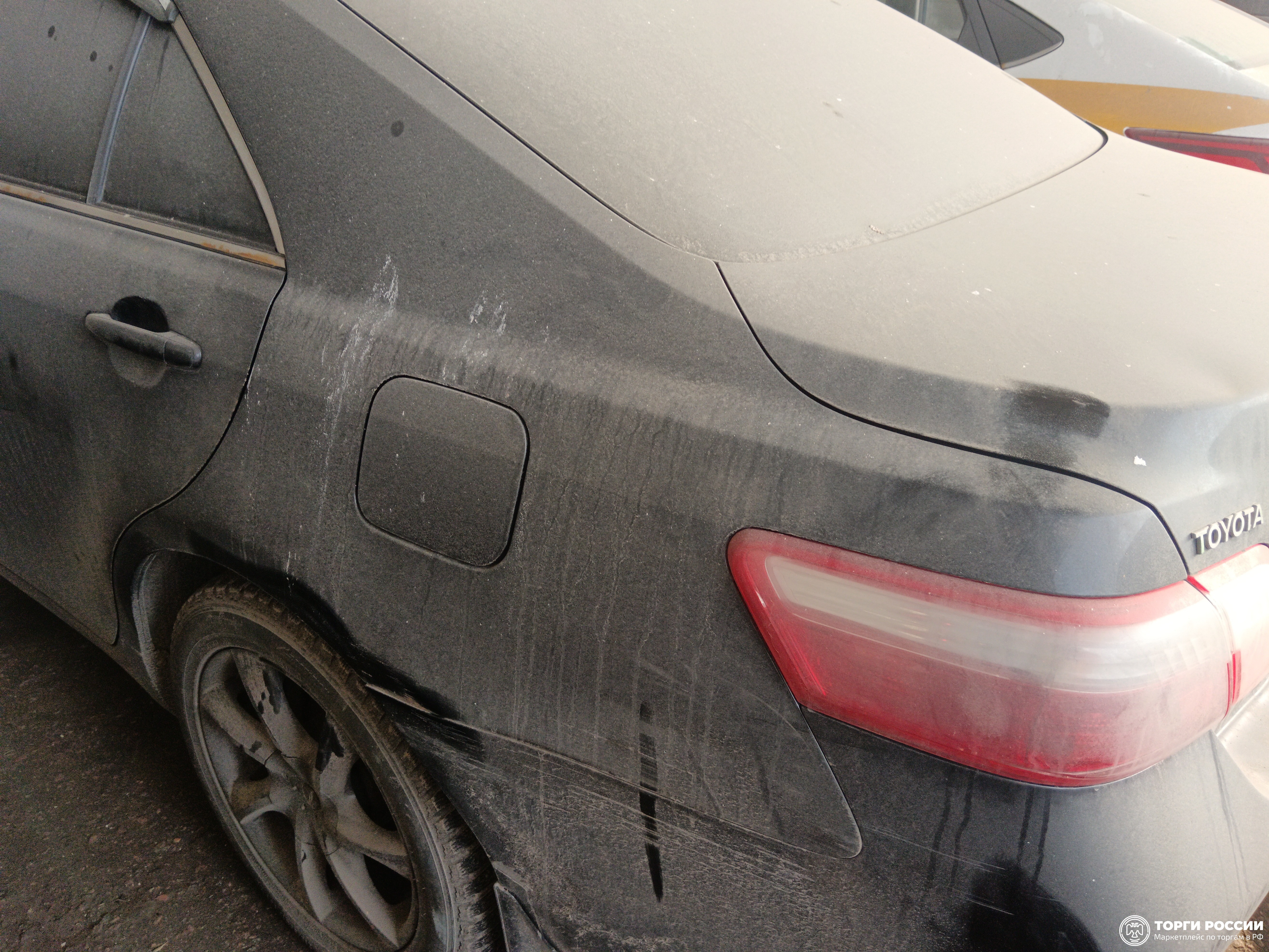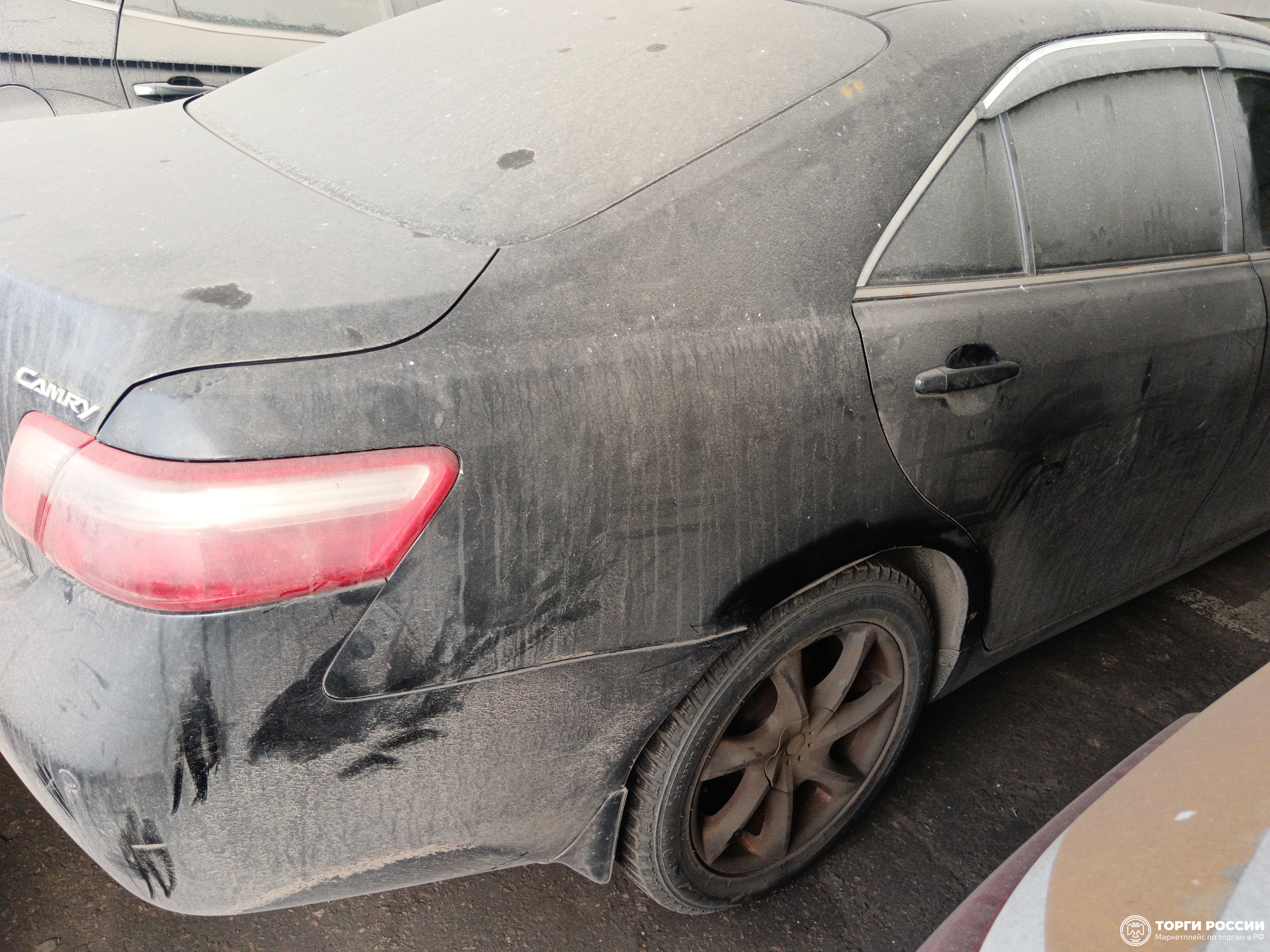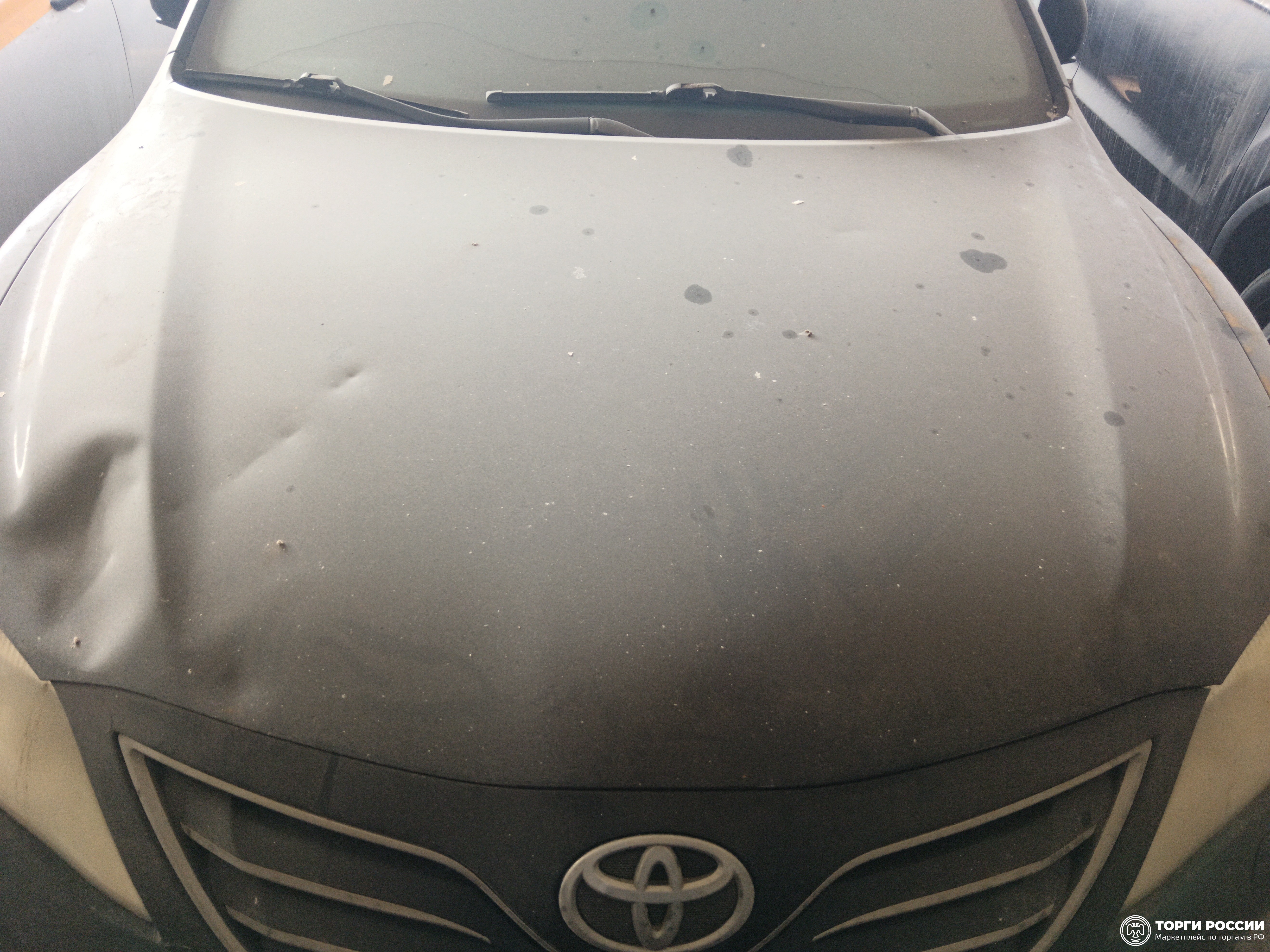 Автомобиль Toyota Camry в удовлетворительном состоянии. Запустить двигатель, осмотреть подкапотное пространство, багажное отделение и салон не удалось по причине отсутствия ключей. На момент осмотра автомобиль в загрязненном состоянии. Кузов автомобиля с повреждениями: ➢ветровое стекло- трещина ➢передний бампер- царапины, сколы, отсутствует заглушка буксировочного крюка ➢капот- вмятина ➢заднее правое крыло- вздутие, коррозия, сколы ➢задний бампер- царапины, сколы ➢крышка багажника- царапины, коррозия ➢заднее левое крыло- царапины ➢передняя левая дверь- царапины ➢переднее левое крыло- вздутие, коррозия, сколы ➢крыша- вздутие, коррозия, сколы, трещина Вторично окрашены: ➢переднее левое крыло ➢переднее правое крыло ➢передняя левая дверь ➢передняя правая дверь ➢крыша ➢задняя правая дверь ➢заднее правое крыло Фары, задние фонари, стекла визуально в удовлетворительном состоянии, имеются дефекты в виде царапин, трещин. На ветровом стекле имеется трещина. Зимние шины в удовлетворительном состоянии. Легкосплавные диски в удовлетворительном состоянии, имеются дефекты эксплуатации в виде царапин, сколов. Данный отчет актуален на момент осмотра. Автоэксперт не даёт гарантии на возможные будущие неисправности/поломки/ошибки. Автоэксперт не гарантирует отсутствие дополнительных скрытых дефектов и точность показаний ЛКП.