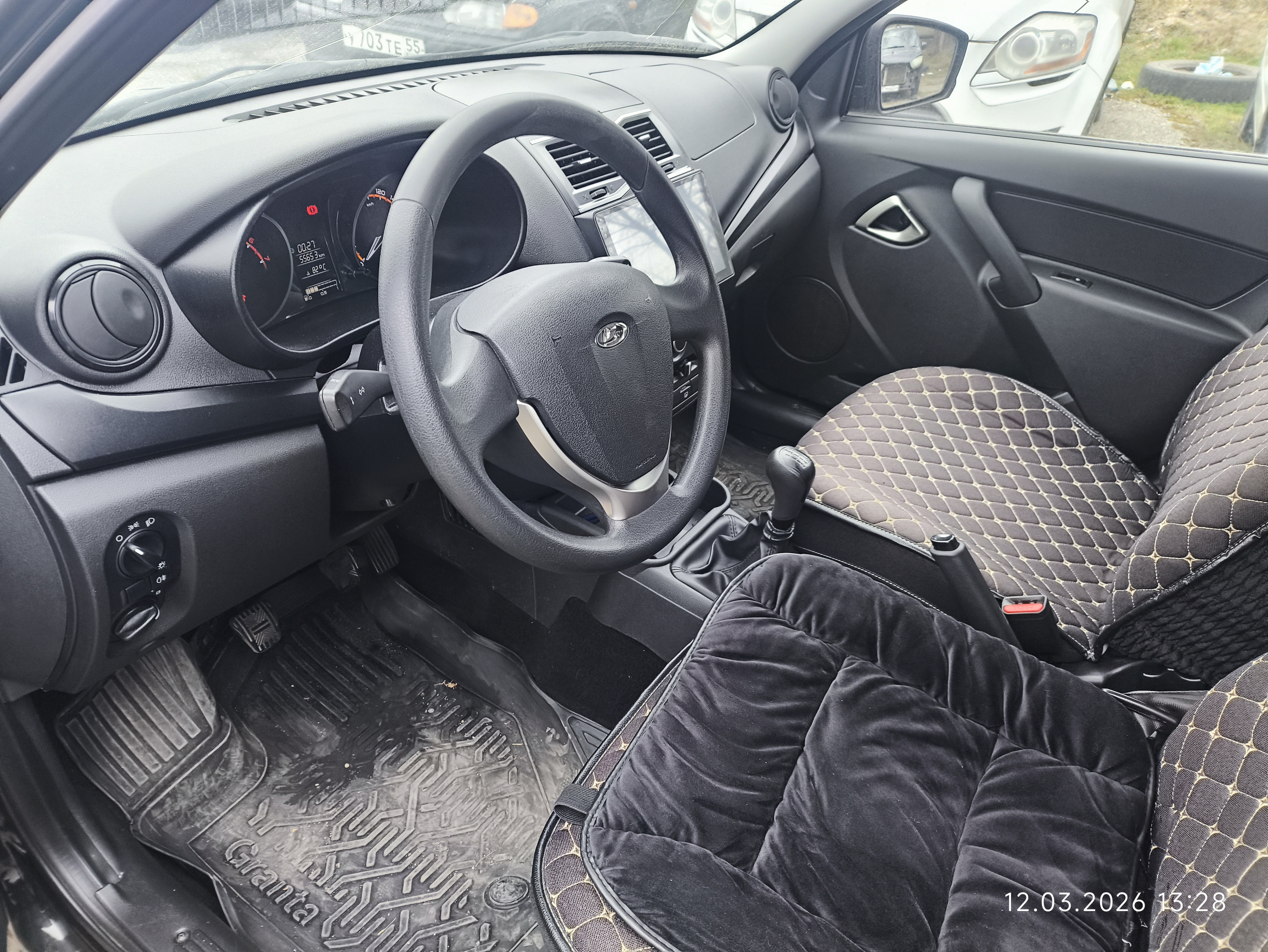 Автомобиль Lada Granta в хорошем состоянии. Пробег автомобиля составляет 55 653 км. На момент осмотра автомобиль в загрязненном состоянии. Кузов автомобиля с незначительными повреждениями: ➢ветровое стекло- трещина ➢передняя правая дверь- царапины, сколы ➢правый порог- царапины, сколы Автомобиль в заводском окрасе. Измерения толщиномером производились в миллиметрах. Подкапотное пространство загрязненное. АКБ разряжена. Двигатель запускается с пускового устройства, работает корректно. Посторонних звуков не наблюдается. Обнаружены следы запотевания масла. Фары, задние фонари, стекла визуально в удовлетворительном состоянии, имеются дефекты в виде царапин, трещин. На ветровом стекле имеется трещина. Летние шины в хорошем состоянии. Стальные диски в удовлетворительном состоянии, имеются дефекты эксплуатации в виде царапин, сколов. Салон в хорошем состоянии, загрязненный, имеются эксплуатационные дефекты (царапины, потёртости), рекомендована химчистка. Руль, рычаг КПП в хорошем состоянии, имеют потертости. Багажный отсек в хорошем состоянии, загрязненный, с эксплуатационными дефектами пластиковых элементов в виде потёртостей, царапин. Запасное колесо в наличии. Данный отчет актуален на момент осмотра. Автоэксперт не даёт гарантии на возможные будущие неисправности/поломки/ошибки. Автоэксперт не гарантирует отсутствие дополнительных скрытых дефектов и точность показаний ЛКП.