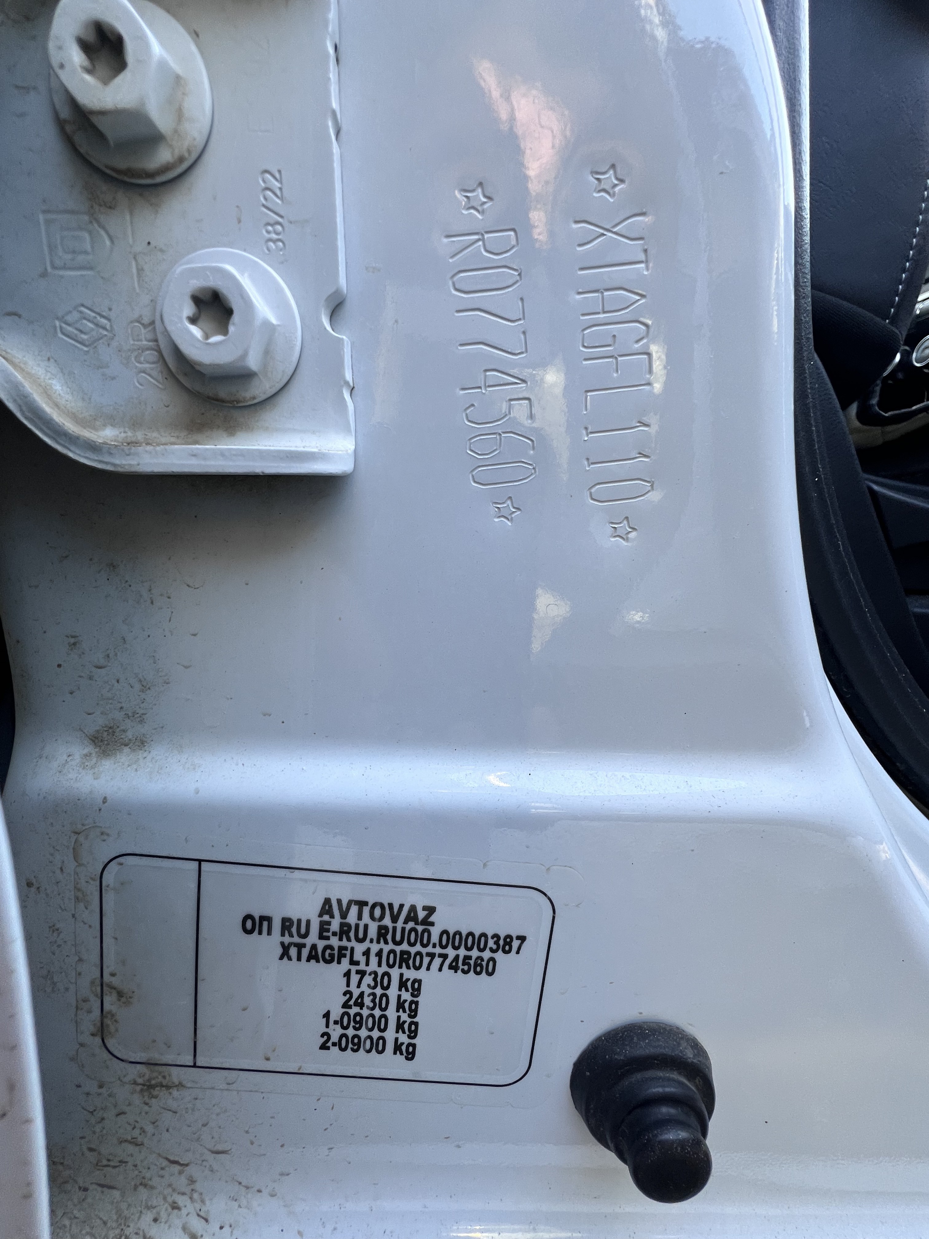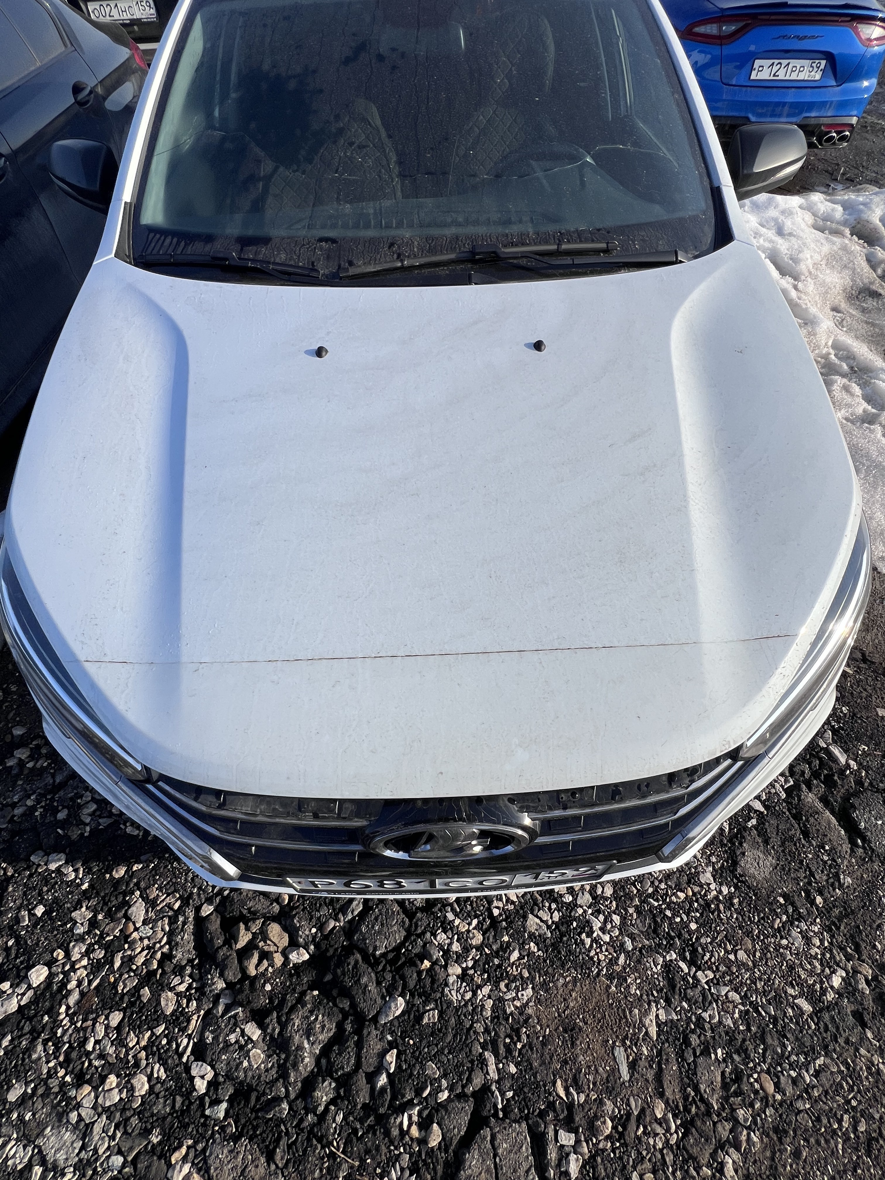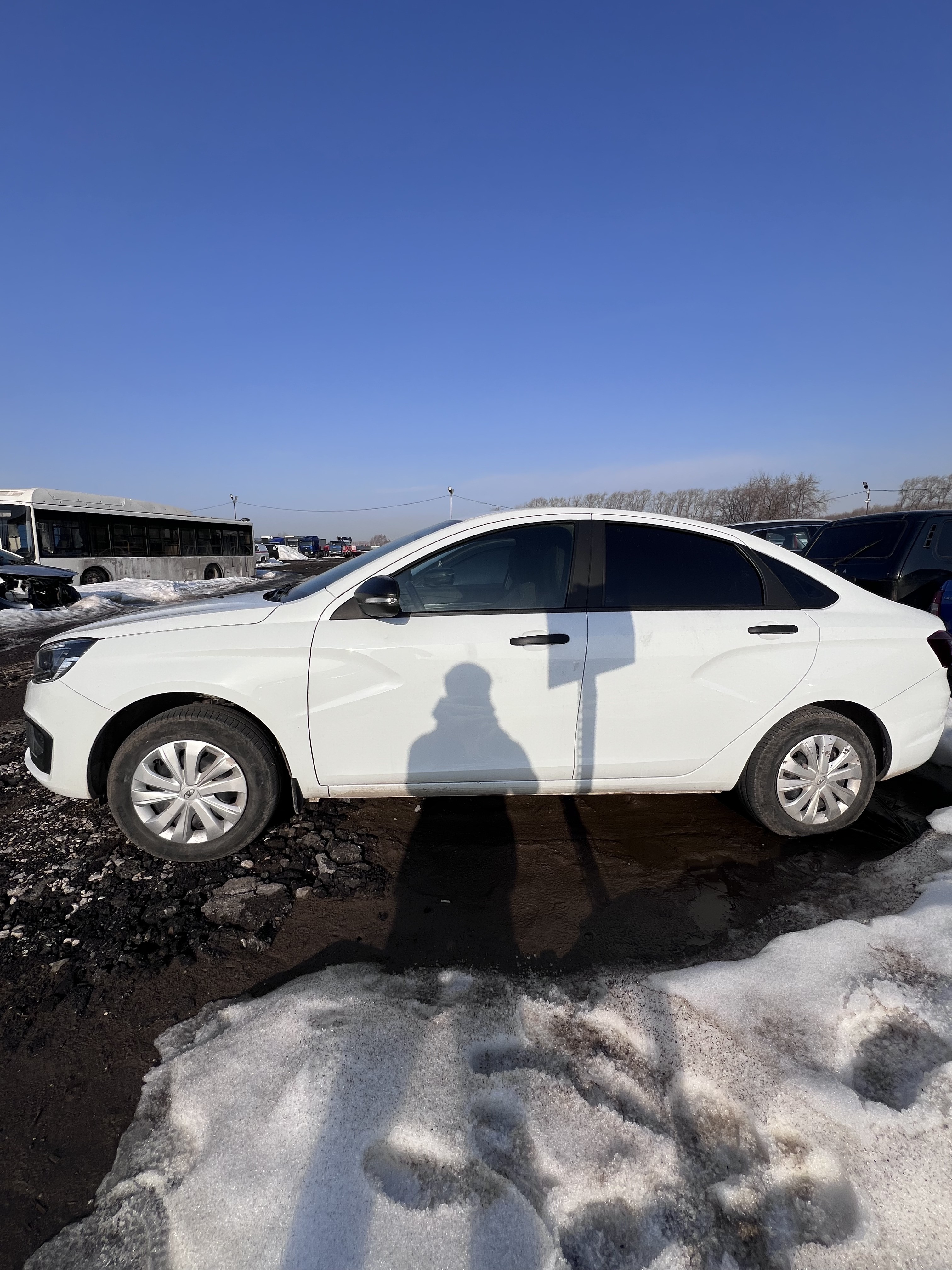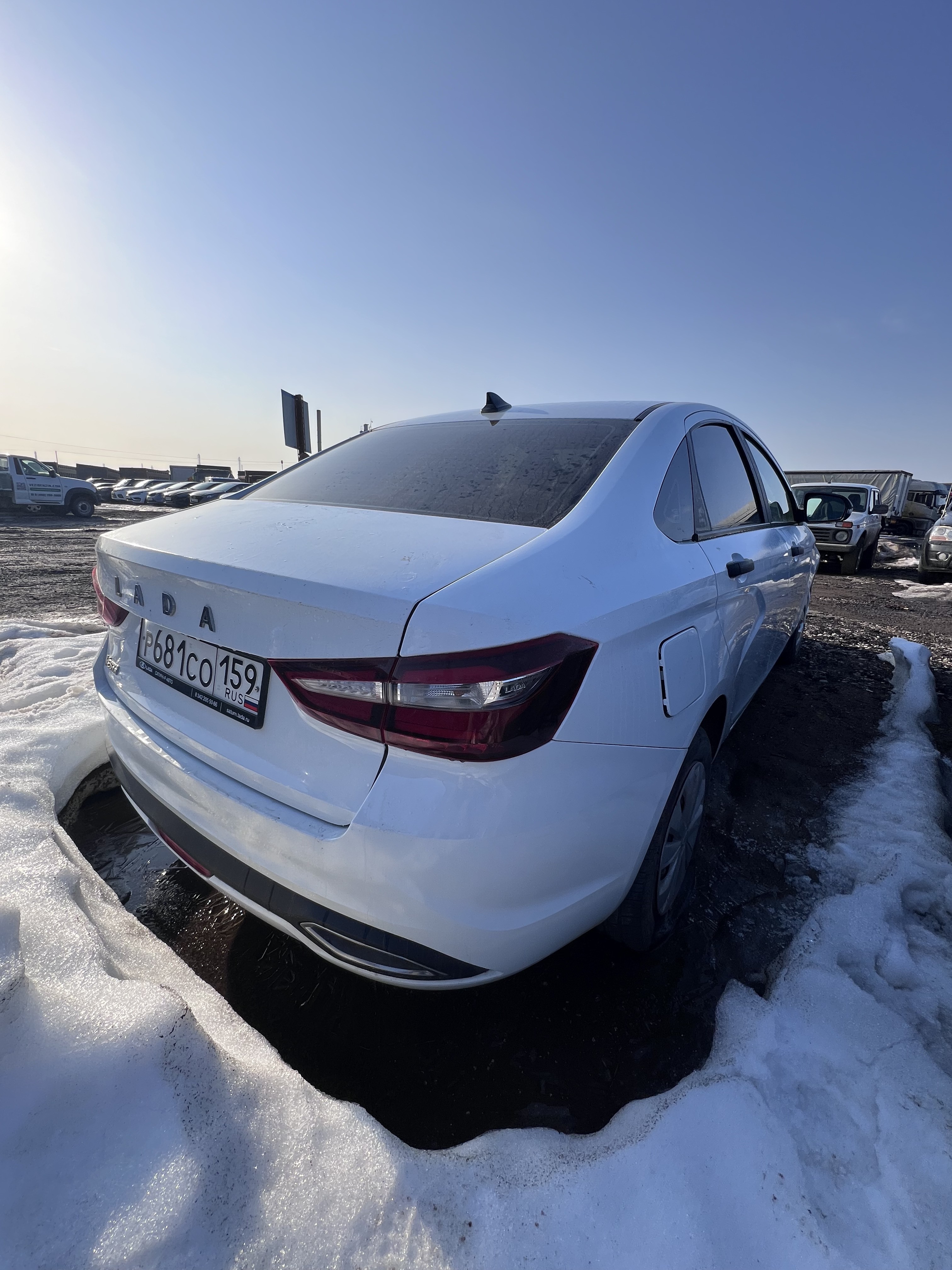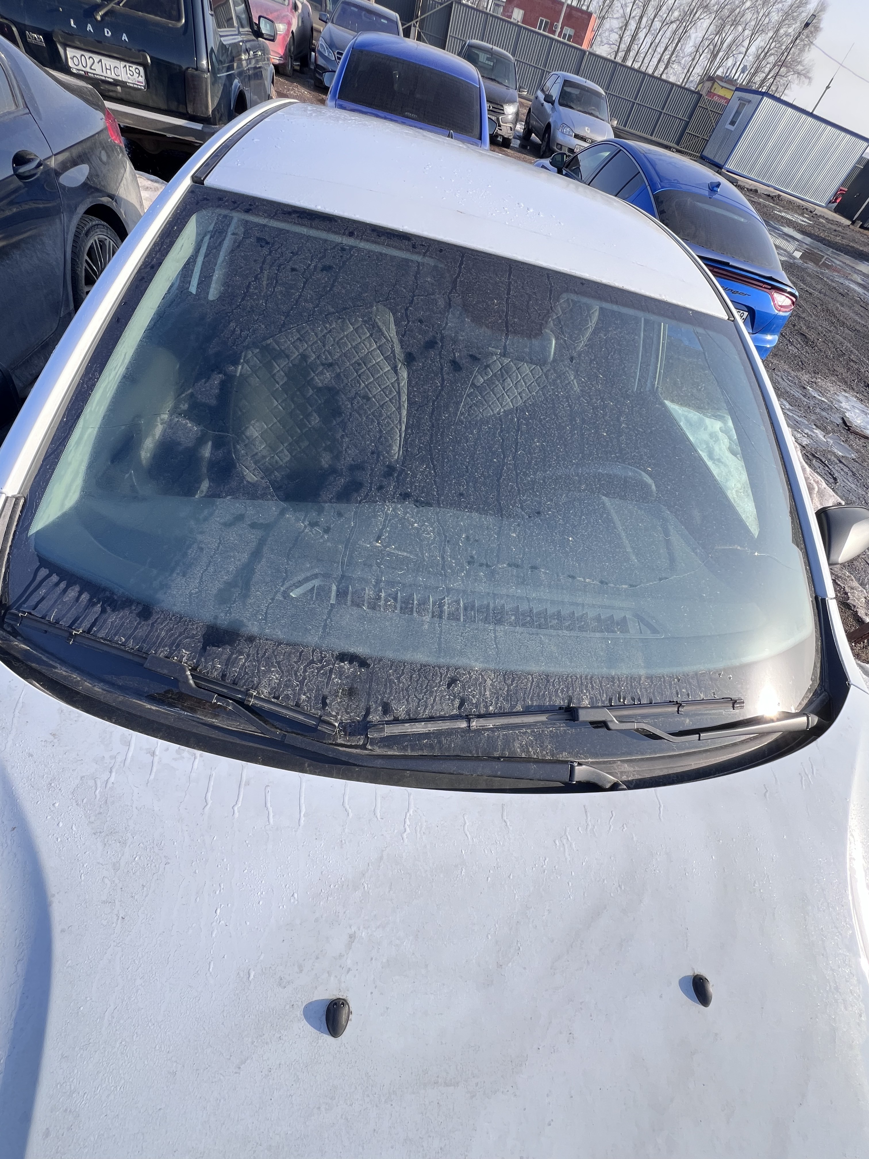 Автомобиль Lada Vesta в хорошем состоянии. Запустить двигатель и осмотреть багажный отсек не удалось, по причине полностью разряженной АКБ. На момент осмотра автомобиль в загрязненном состоянии (частично присутствует небольшой слой наледи). Кузов автомобиля с повреждениями: ➢ветровое стекло- трещины Вторично окрашены: ➢заднее левое крыло ➢заднее правое крыло Капот и крыша автомобиля частично покрыты защитной плёнкой. Подкапотное пространство загрязненное. АКБ разряжена. Двигатель не запускается. Течей технических жидкостей не обнаружено. Фары, задние фонари, стекла визуально в удовлетворительном состоянии, имеются дефекты в виде царапин. На ветровом стекле имеются трещины. Летние шины в удовлетворительном состоянии. Стальные диски в удовлетворительном состоянии, имеются дефекты эксплуатации в виде царапин, сколов. Салон в хорошем состоянии, имеются небольшие эксплуатационные дефекты (царапины, потёртости), рекомендована химчистка. Руль, рычаг КПП в хорошем состоянии, имеют небольшие потертости. Багажный отсек не открывается, по причине разряженной АКБ. Данный отчет актуален на момент осмотра. Автоэксперт не даёт гарантии на возможные будущие неисправности/поломки/ошибки. Автоэксперт не гарантирует отсутствие дополнительных скрытых дефектов и точность показаний ЛКП.