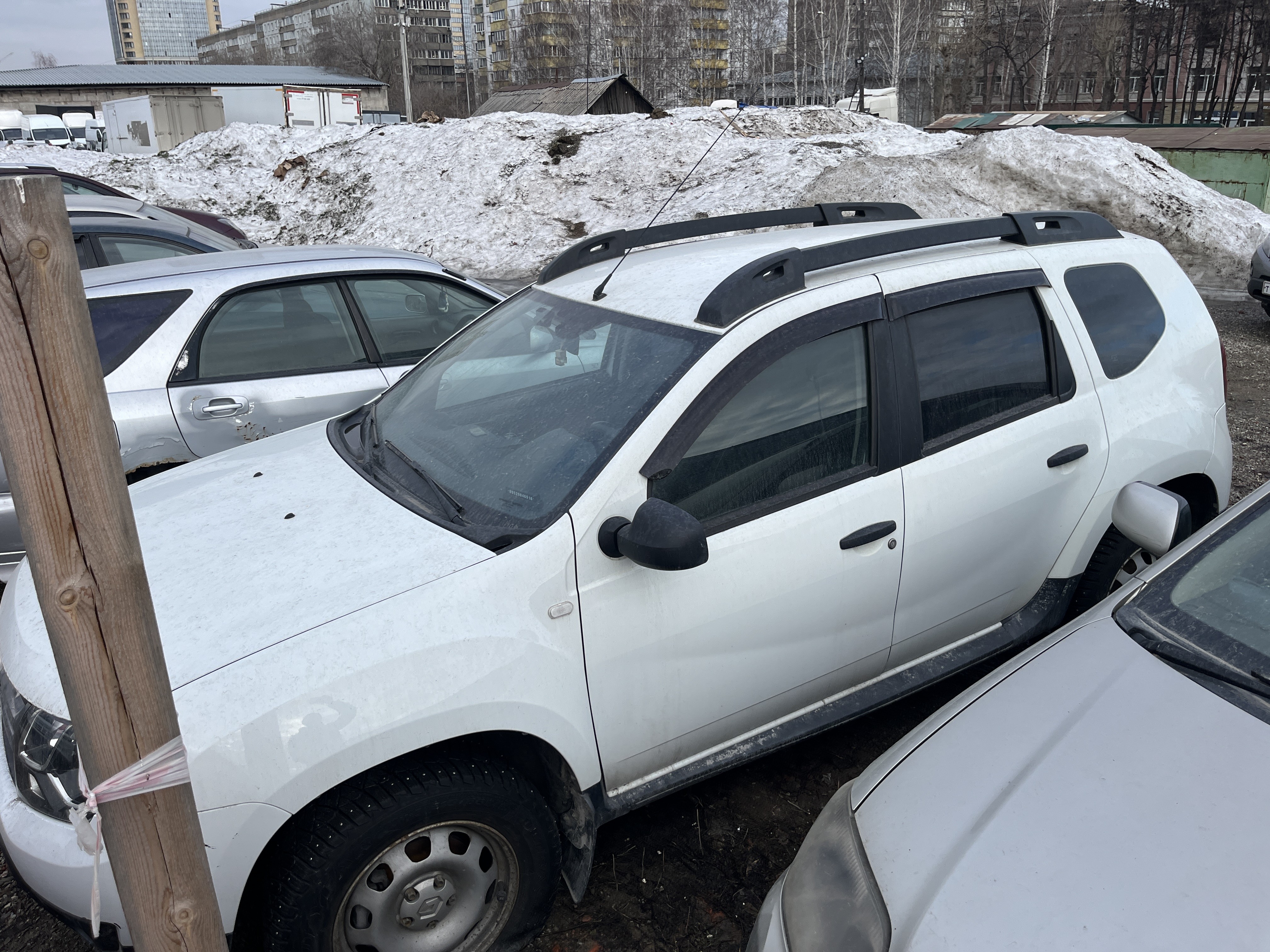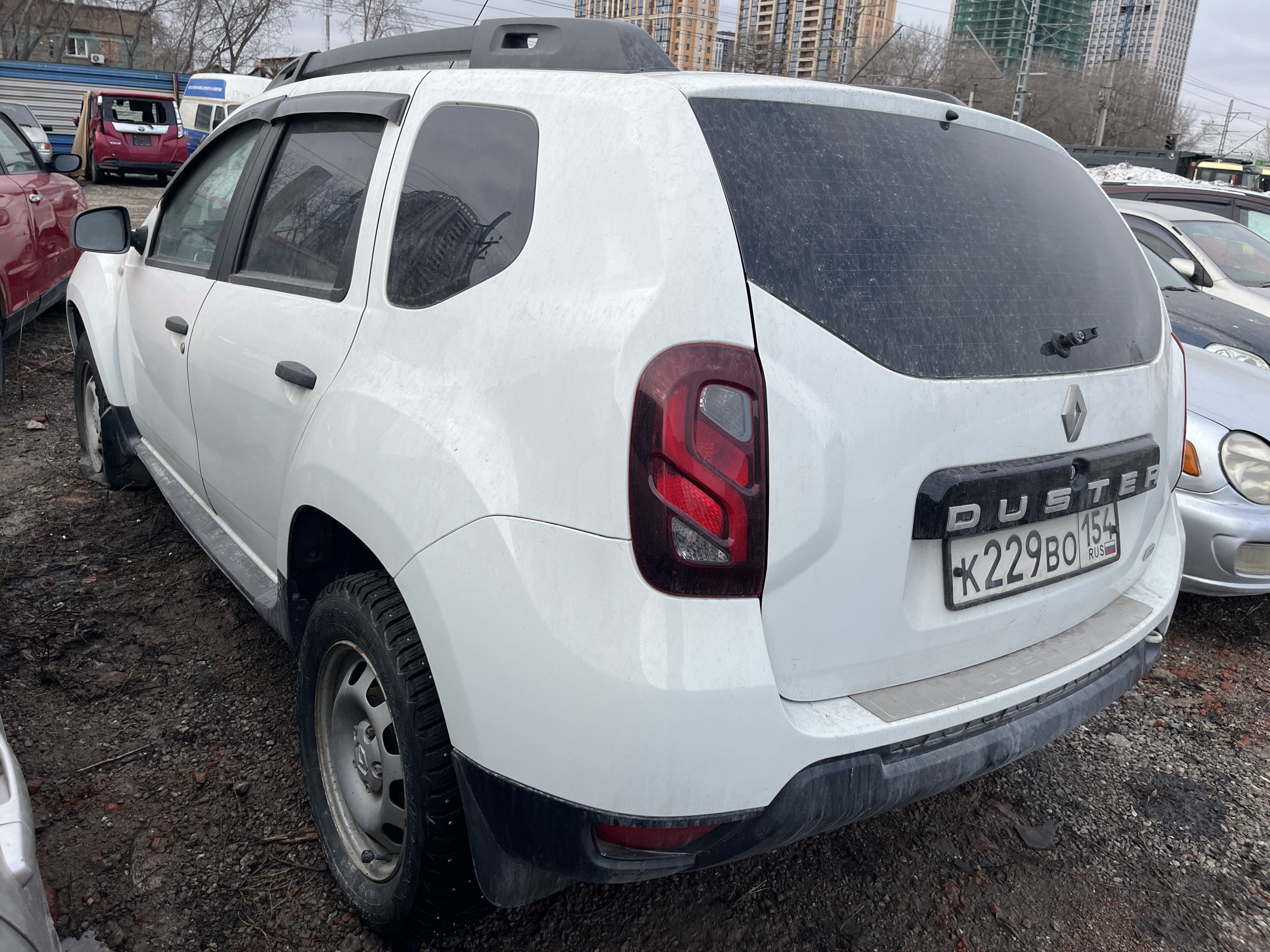 Автомобиль Renault Duster в удовлетворительном состоянии. Запустить двигатель, осмотреть подкапотное пространство, багажное отделение и салон не удалось, по причине отсутствия ключей. На момент осмотра автомобиль в загрязненном состоянии. Кузов автомобиля с повреждениями: ➢крышка багажника- отсутствует дворник ➢передний бампер- царапины, сколы ➢заднее правое крыло- сколы, разрушение пластиковой накладки Вторично окрашены: ➢крышка багажника ➢заднее правое крыло Фары, задние фонари, стекла визуально в удовлетворительном состоянии, имеются дефекты в виде царапин. Зимние шины в удовлетворительном состоянии. Стальные диски в удовлетворительном состоянии, имеются дефекты эксплуатации в виде царапин, сколов, коррозии. Данный отчет актуален на момент осмотра. Автоэксперт не даёт гарантии на возможные будущие неисправности/поломки/ошибки. Автоэксперт не гарантирует отсутствие дополнительных скрытых дефектов и точность показаний ЛКП.