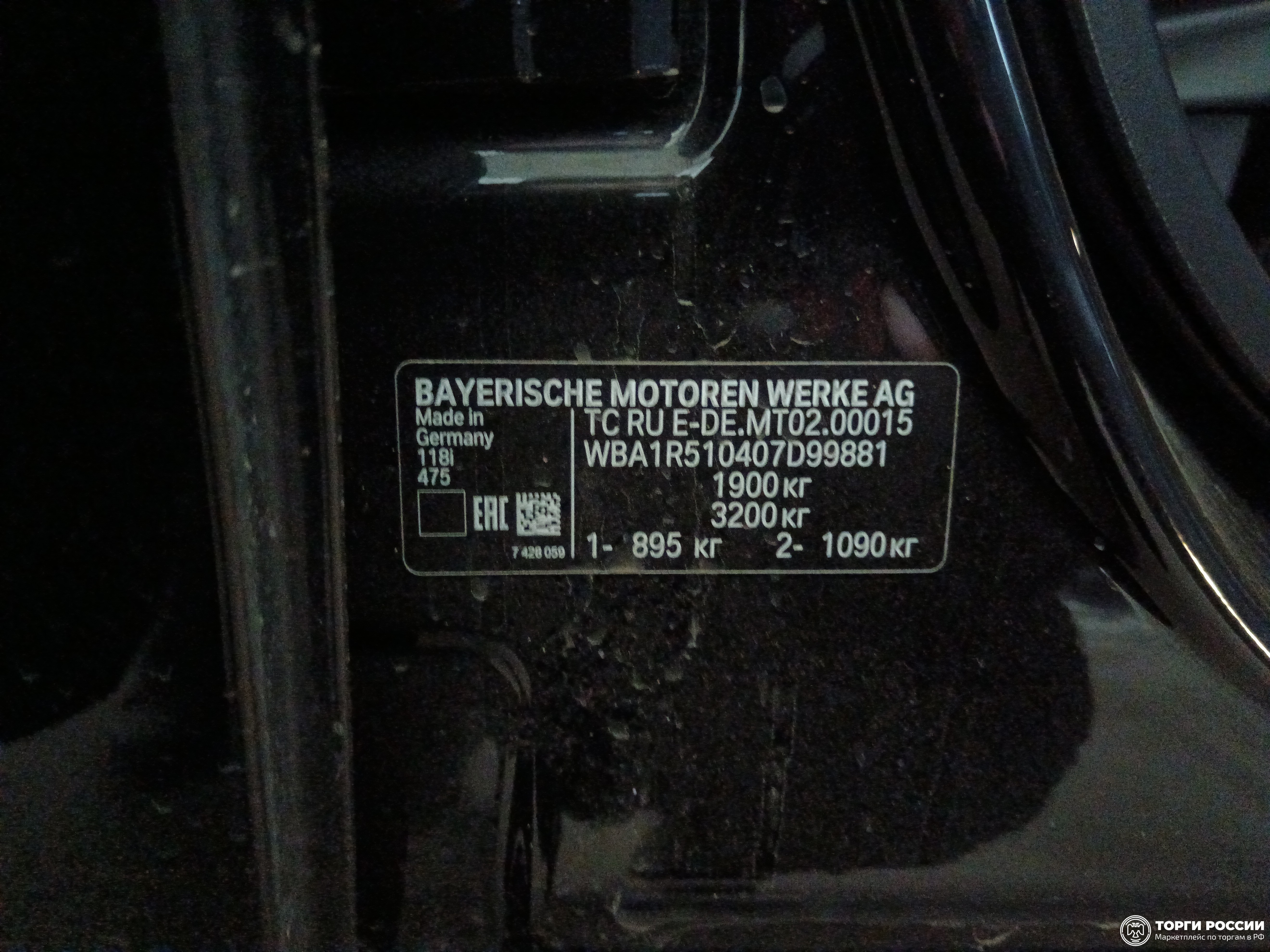 Транспортное средство. Модель: BMW 118i. Тип КПП: АКПП. VIN WBA1R510407D99881. Гос. номер: С834ВО977. Год выпуска: 2019. Адрес местонахождения: г. Москва, Эстакада Лужнецкого ТТК , напротив Новолужнецкого проезда, д. 9 стр. 3.
